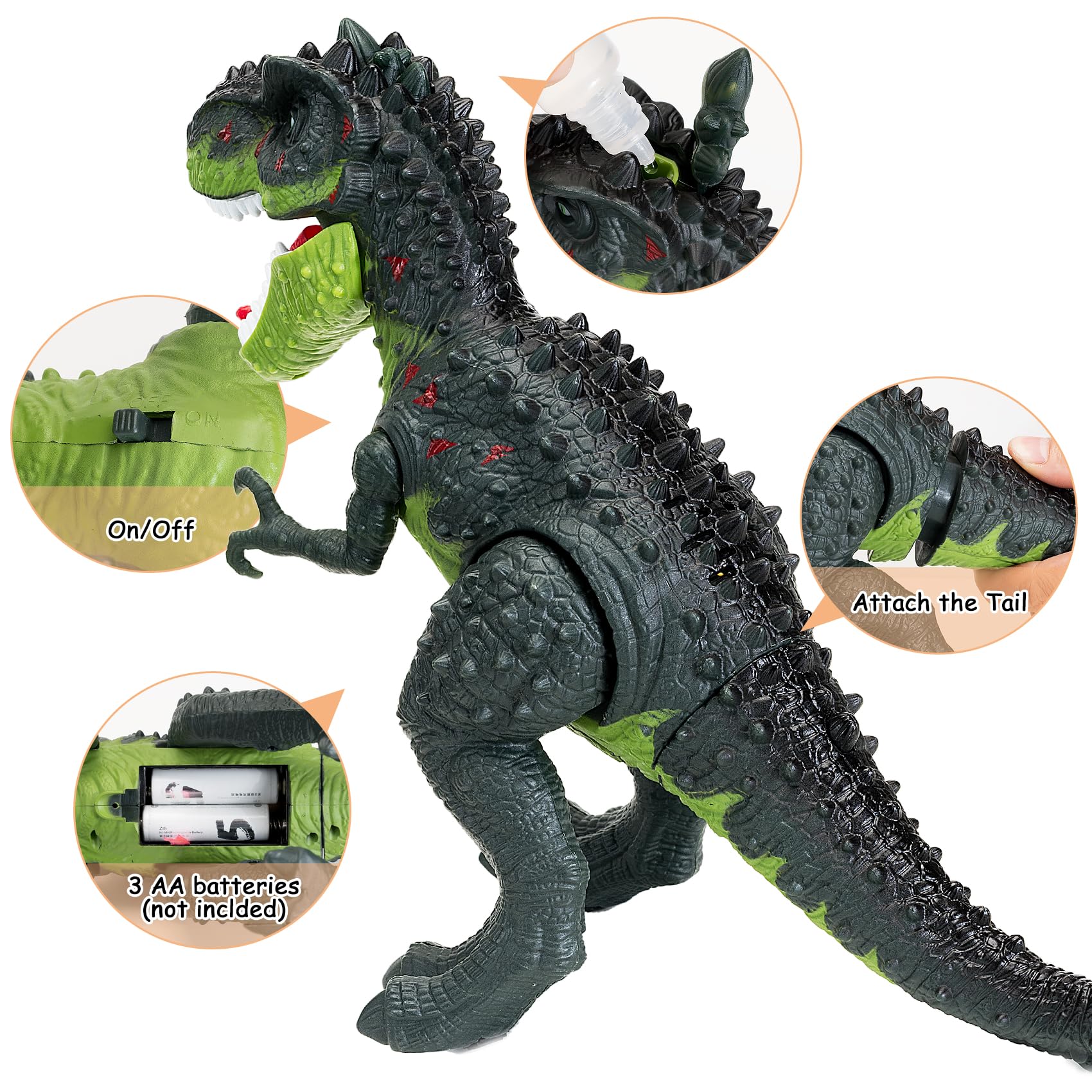 - Easy to Play: The mechanical Dinosaur that requires 3x AA batteries (not included), has a detachable tail. Install the tail with body by press the second spine of tail and align the position of the buckle