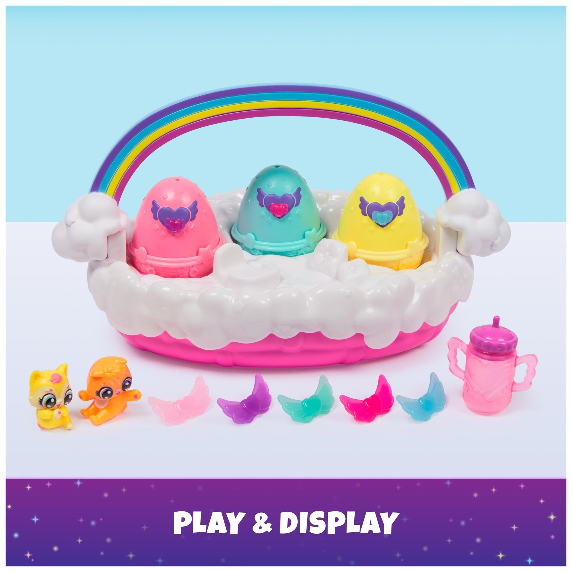 - PLAY & DISPLAY: This basket is the prettiest way to display your Hatchimals toy figures. Play with your new friends on the molded highchair & pillows