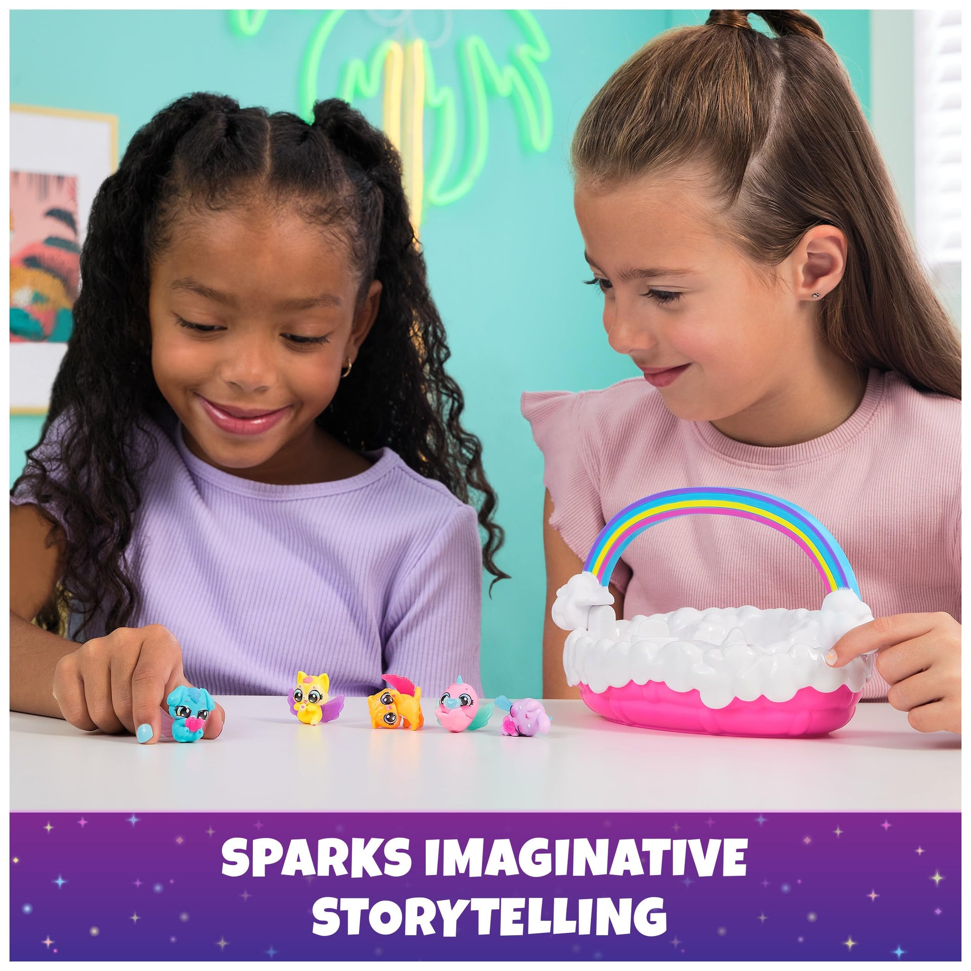 - NEON HATCHIMALS SPRING EASTER BASKET: Pearlescent clouds & a rainbow handle for on-the-go nurturing pretend play make this toy a special spring treat. Includes 5 Neon Rainbow Hatchimals – Bunnypie, Puppadee, Kittingale & more