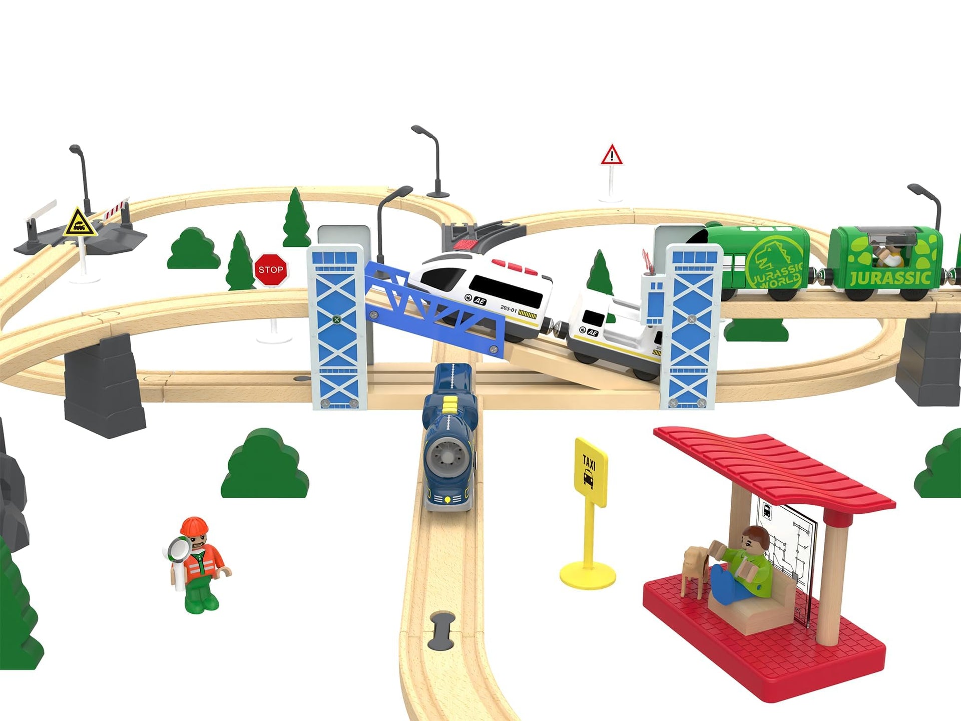 - Z MAYABBO Wooden Train Set Accessories Wood Railway Bridge for Railroad Tracks, 2-Level Overpass Compatible for All Railway Tracks System