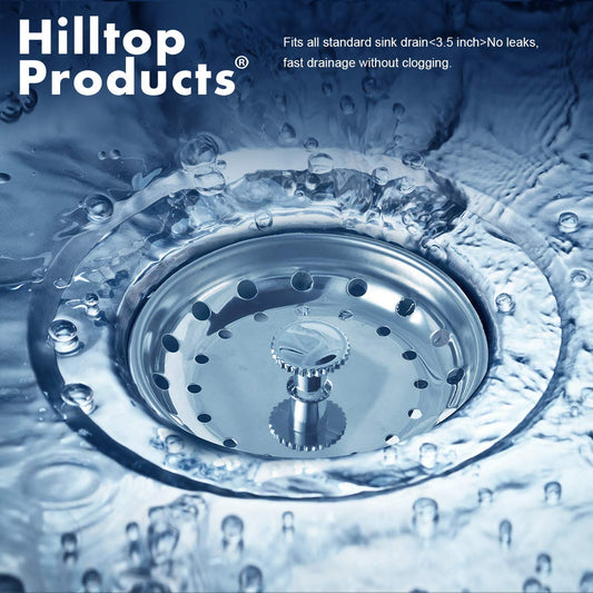 2-Pack Kitchen Sink Strainer & Stopper Combo, Fits Standard 3.5" Drain, Stainless Steel Basket with Plastic Knob & Rubber Stopper, Hilltop Products