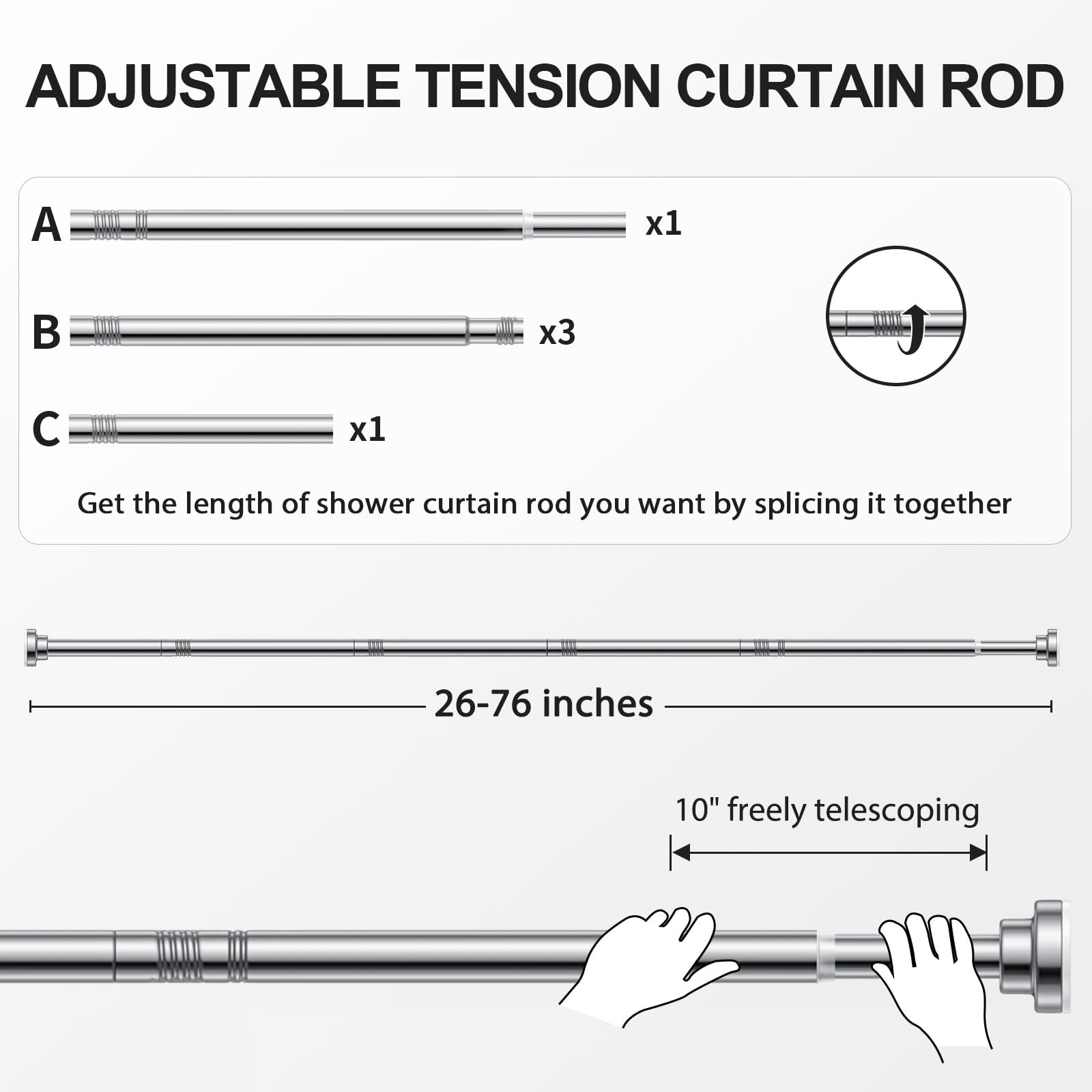 - Ausemku Shower Curtain Rod, 26-76 Inch Adjustable Stainless Steel Tension Rod, Rustproof & Non-Slip, No-Drill for Bathroom & Kitchen, Silver
