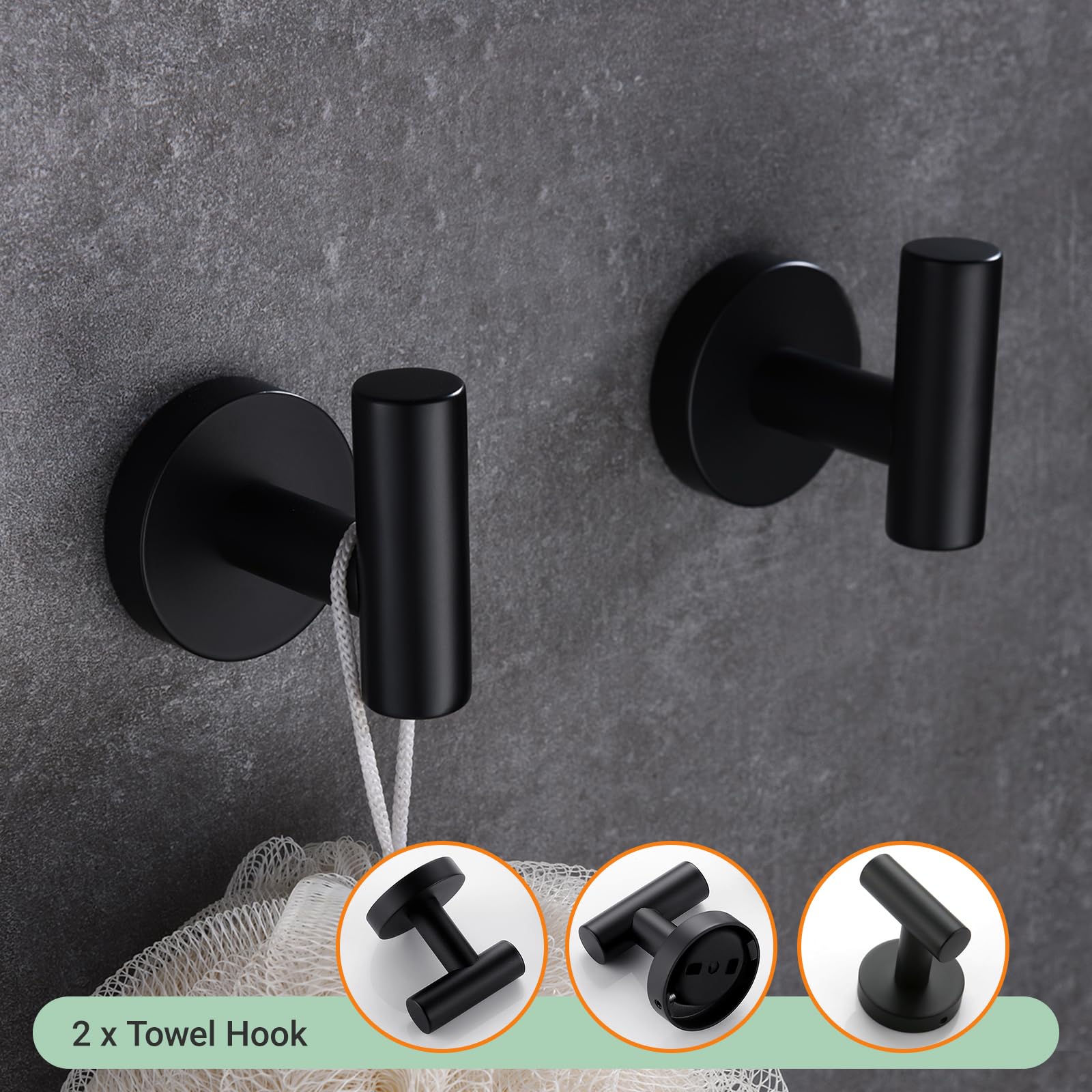 - Hoooh Matte Black 4-Piece Bathroom Set, Stainless Steel Wall Mount with 24" Towel Bar, Toilet Paper Holder & 2 Robe Hooks, BS100S4B-BK