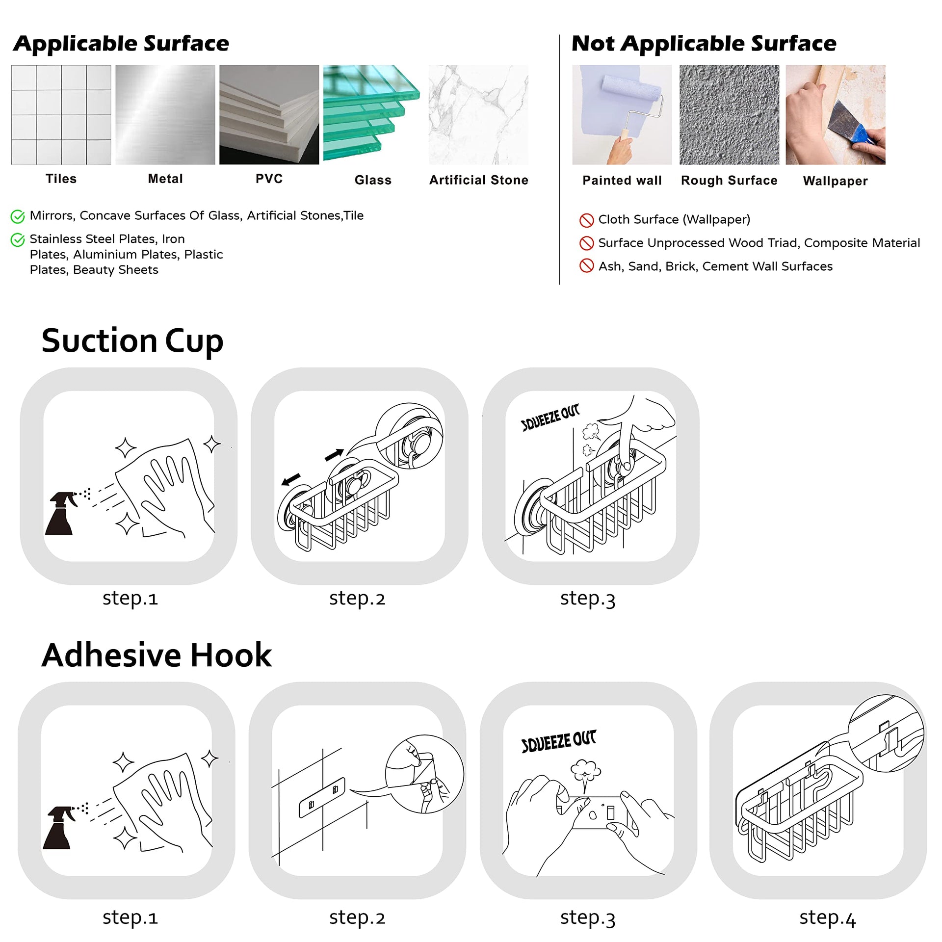 - Important Compatibility Notice: Suction cups are only effective on smooth, non-porous surfaces such as polished tile, stainless steel, or glass. Does NOT stick well to stone, cement, granite, Silgranit, marble, or textured surfaces. Use included adhesive pad for those surfaces.