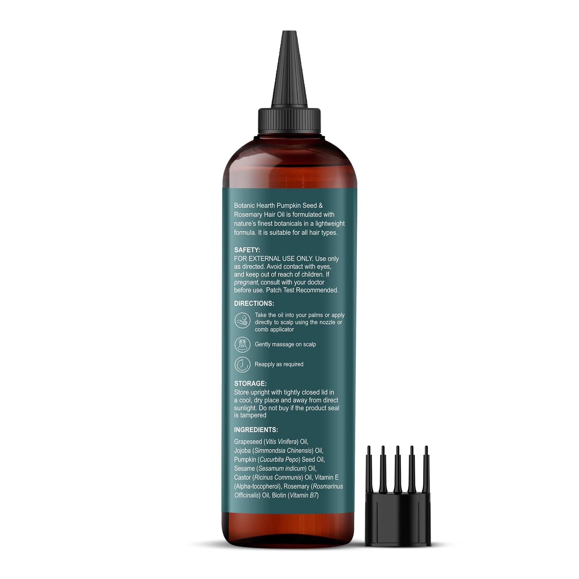 Botanic Hearth Rosemary Hair Growth Oil with Pumpkin Oil - 100% Pure Hair Tonic for Dry, Damaged Hair - Strengthening & Nourishing, 6.7 fl oz