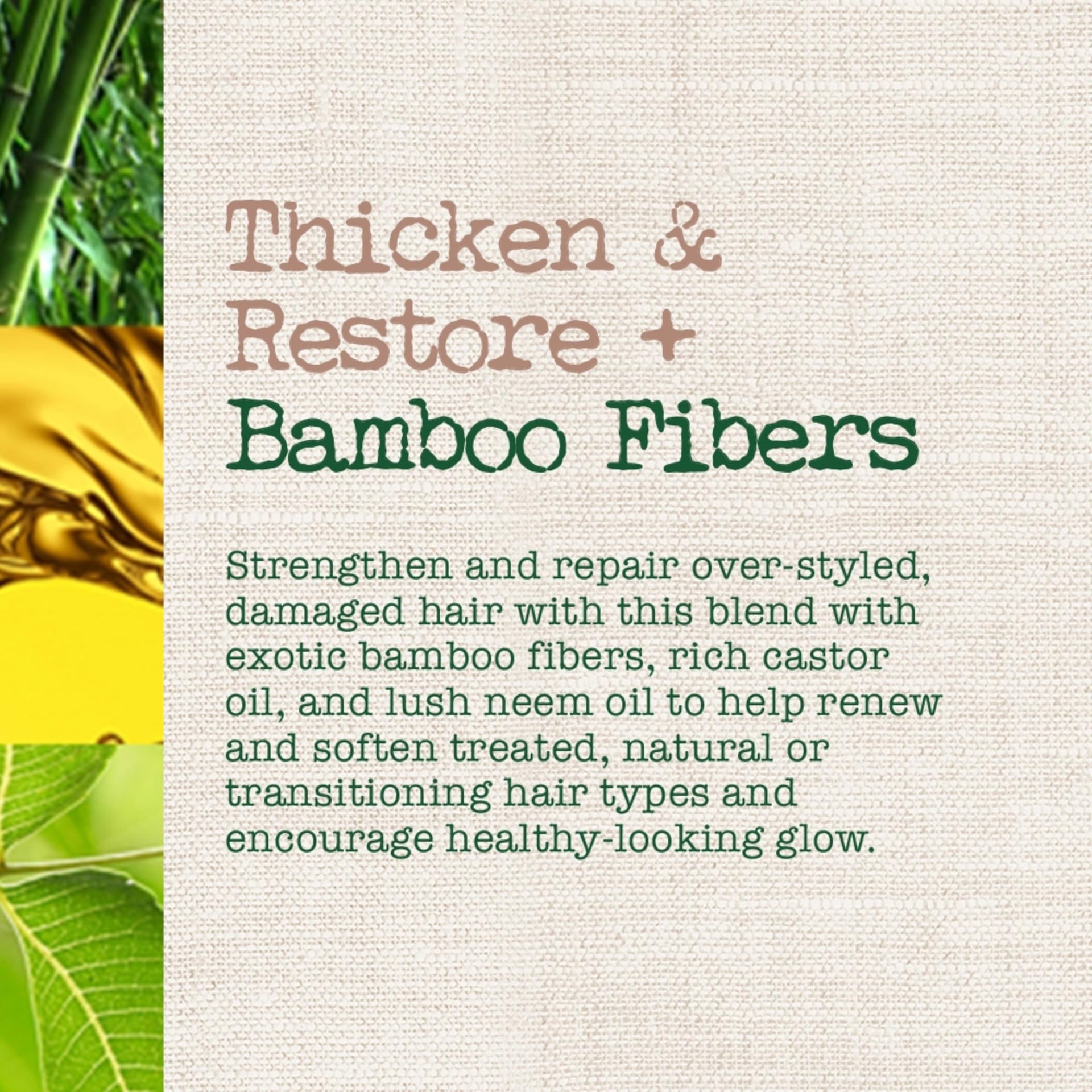 - THICKEN & STRENGTHEN STRANDS: This 13-fluid ounce bottle of Maui Moisture Thicken & Restore + Bamboo Fibers Conditioner contains a strengthening formula that helps densify and revive brittle curls to their fullest bounce