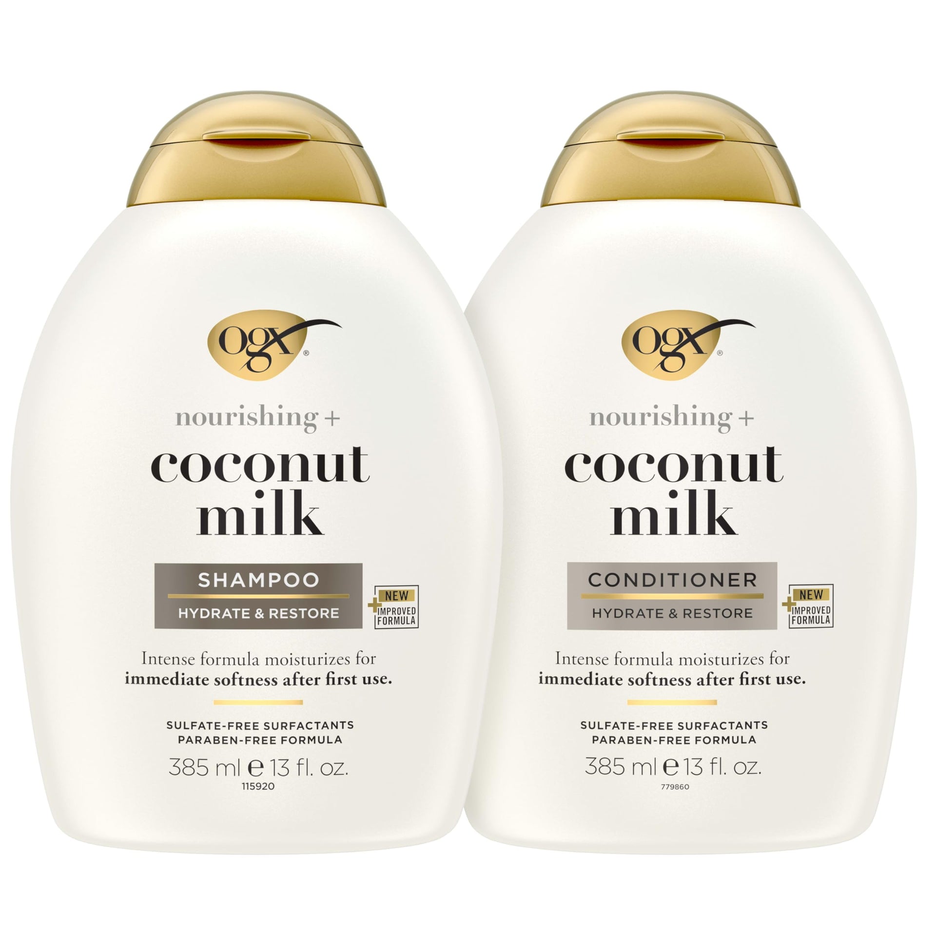 OGX Coconut Milk Shampoo & Conditioner Set, Sulfate-Free, Hydrating & Softening, Creamy Coconut Milk, White Peach & Shea Butter Scent, 2 x 13 fl oz