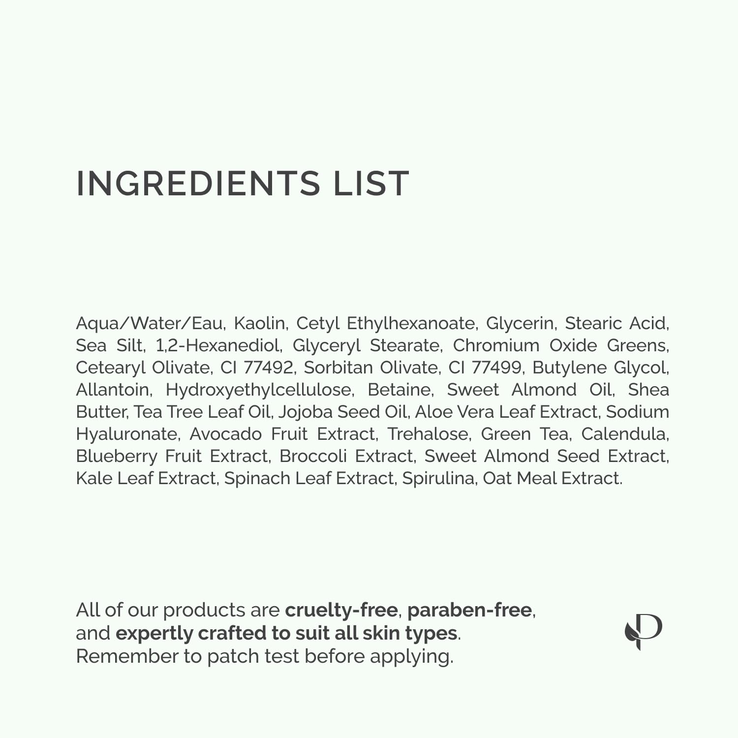 - OUR FACE AND BODY MASK uses Korean skincare secrets and has been formulated with a unique combination of seven powerful superfoods: avocado, spinach, blueberry, spirulina, tea tree, aloe vera, and calendula.