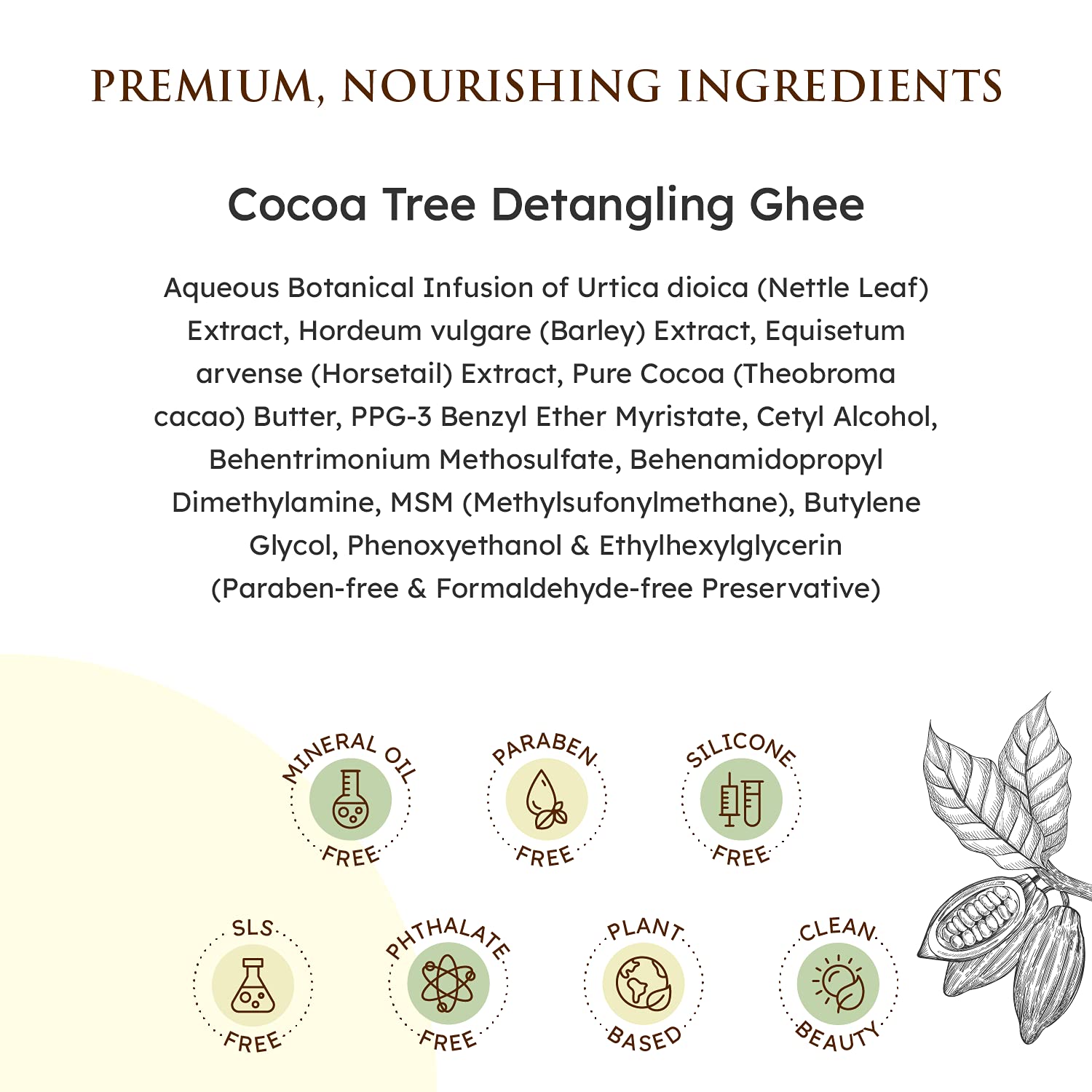 Qhemet Biologics Cocoa Tree Detangling Ghee – Softening Leave-In for 4C-3C Hair, Restores Elasticity & Shine, Eases Combing, 9 oz