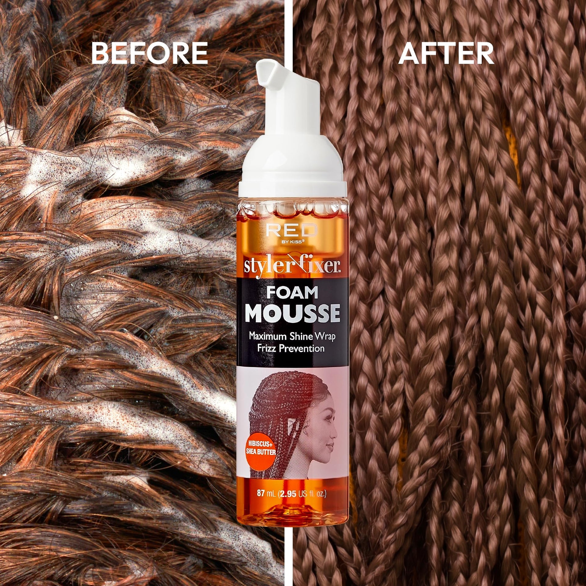 Red by Kiss Foaming Mini Travel Mousse – Hibiscus & Shea Butter, Anti-Frizz Curl Defining Wrap Foam, Adds Shine & Nourishes Dry Hair
