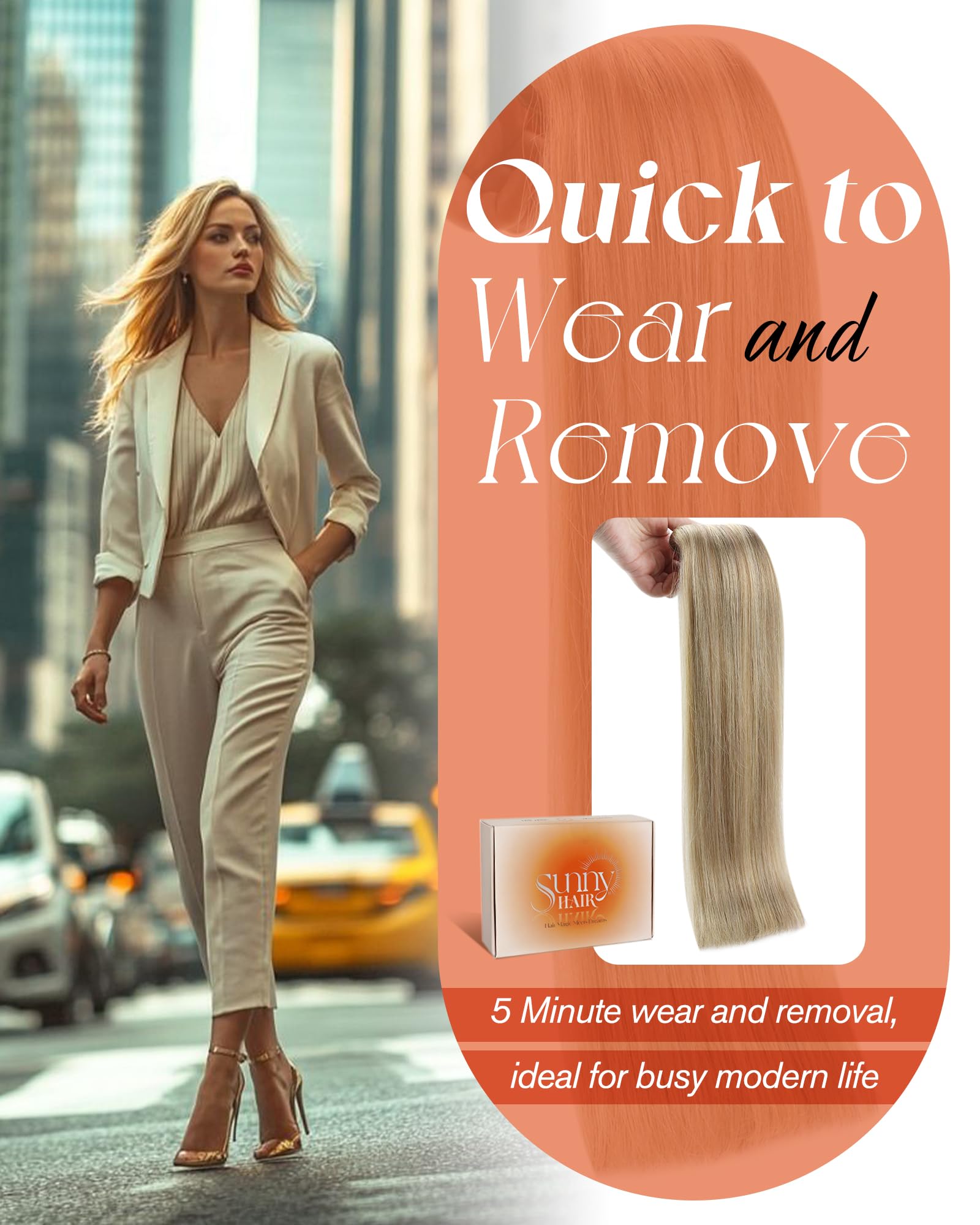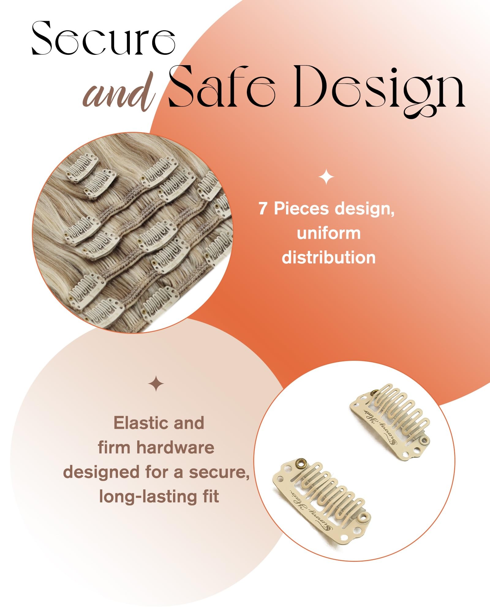 Sunny Clip-in Human Hair Extensions – 18" Straight Remy Real Hair, Golden Blonde with Light Blonde Highlights, Soft, Natural & Easy to Style