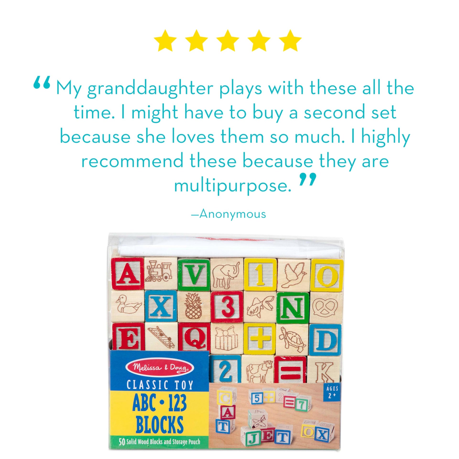 Melissa & Doug Deluxe Wooden ABC/123 1-Inch Blocks Set with Storage Pouch (50 pcs)