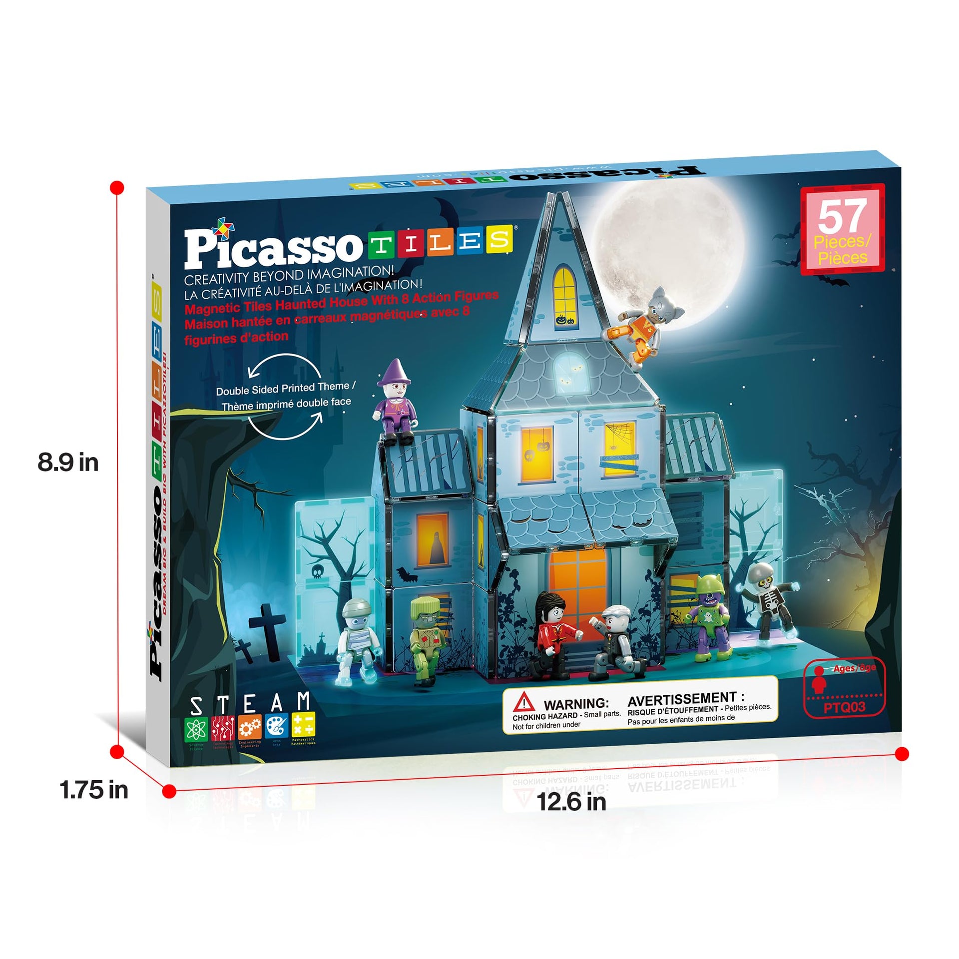 PicassoTiles Haunted House Magnetic Building Set with 8 Figures, Double-Sided Tiles, STEM Learning Toy for Kids 3+, Halloween Playset