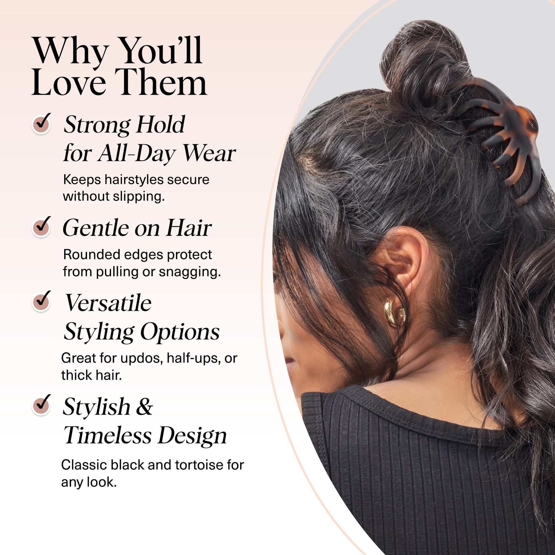 Kitsch Octopus Claw Clips for Women - Cute & Stylish Hair Clips for Everyday Use, Octopus Claw Clip for Thick Hair | Ideal Gifts for Women - Black & Tortoise, 2pcs