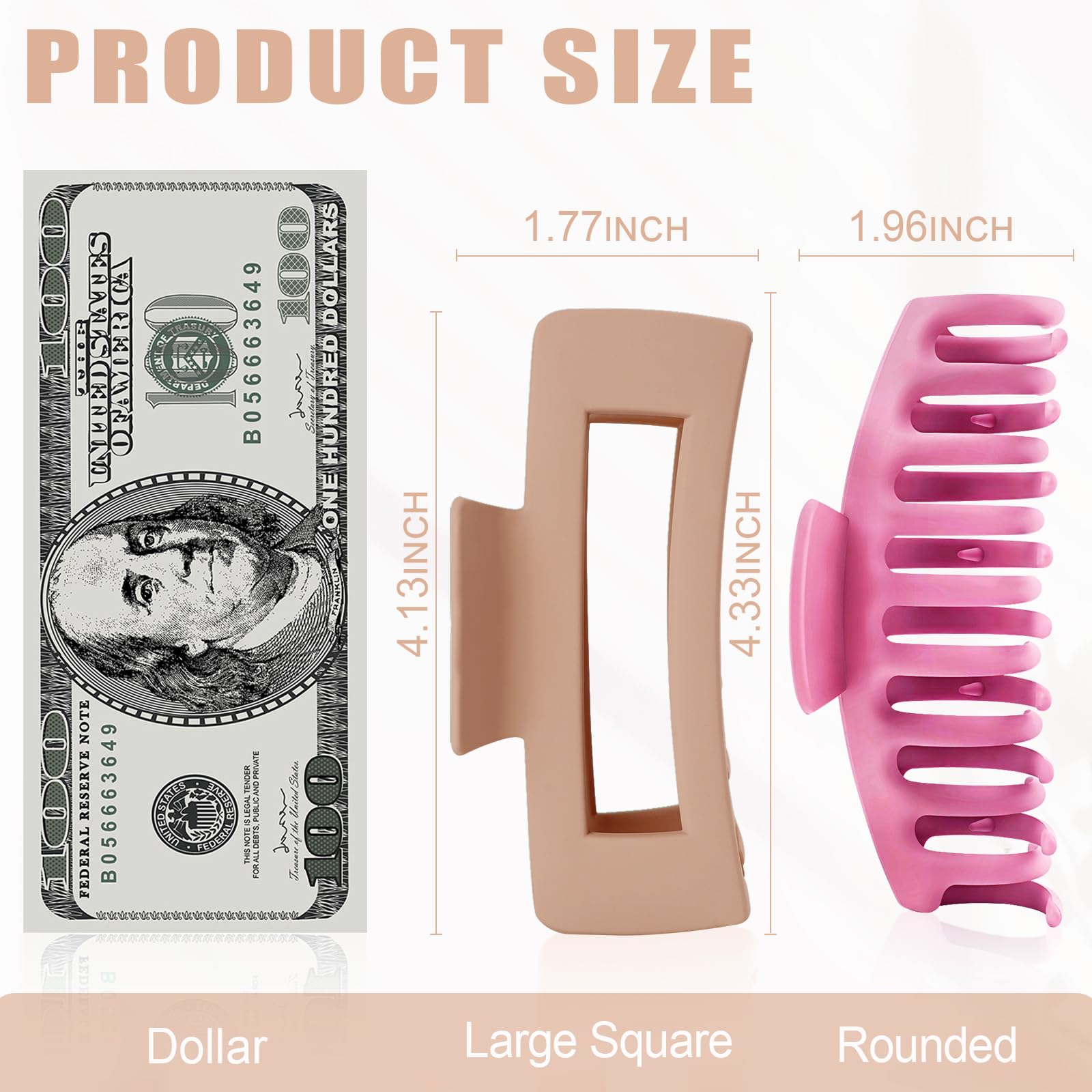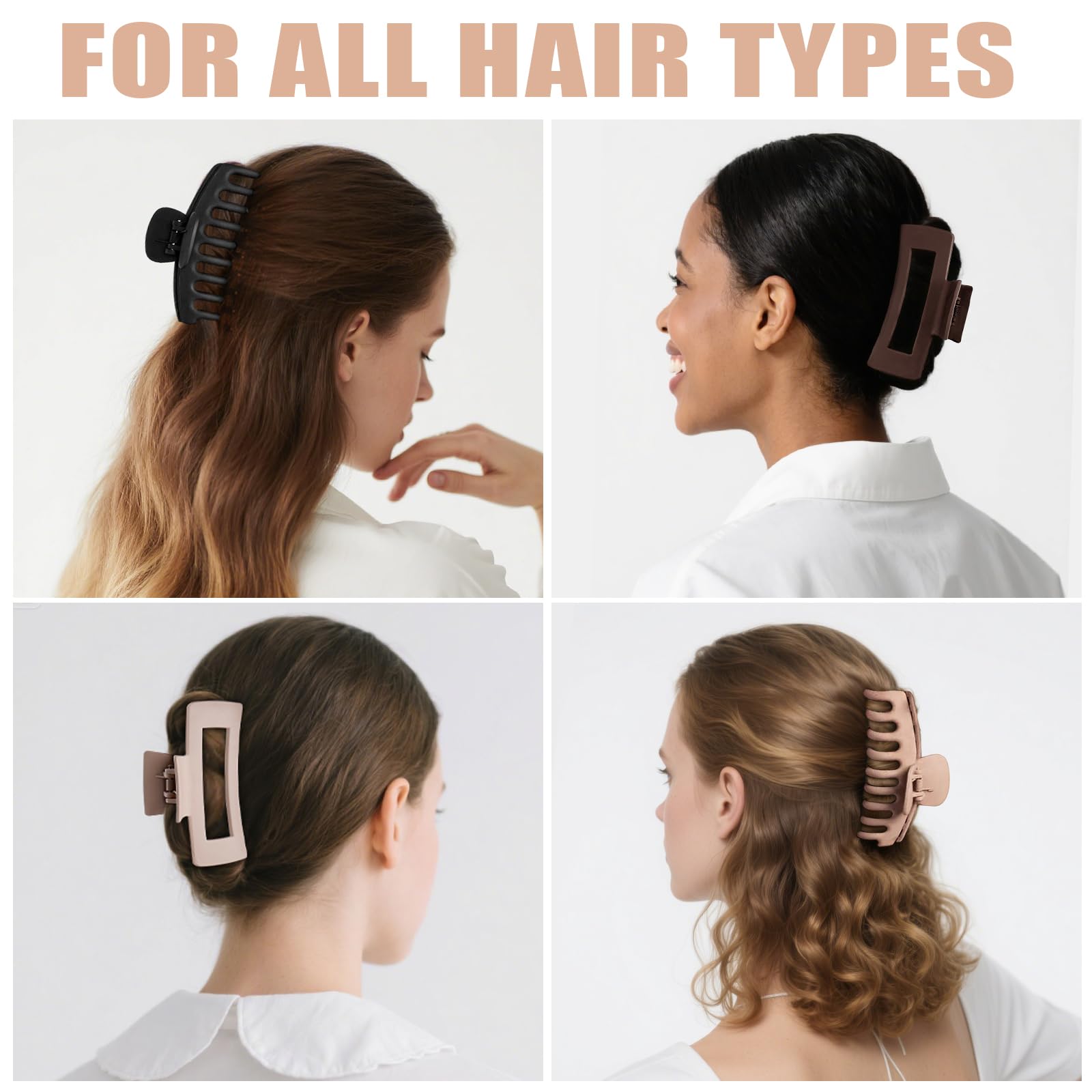 TOCESS 8 Pack Large Hair Claw Clips for Women – 4.33" Matte Jumbo Clips for Thick, Thin & Curly Hair, 90’s Style Strong Hold, Nonslip Design