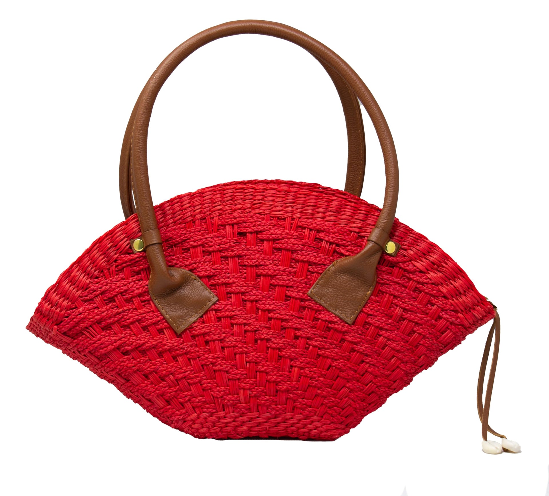 - Sensi Studio, Thick Weave Mini Basket, Unique, Red Straw/Camel Leather Strap/Red Linen Lining