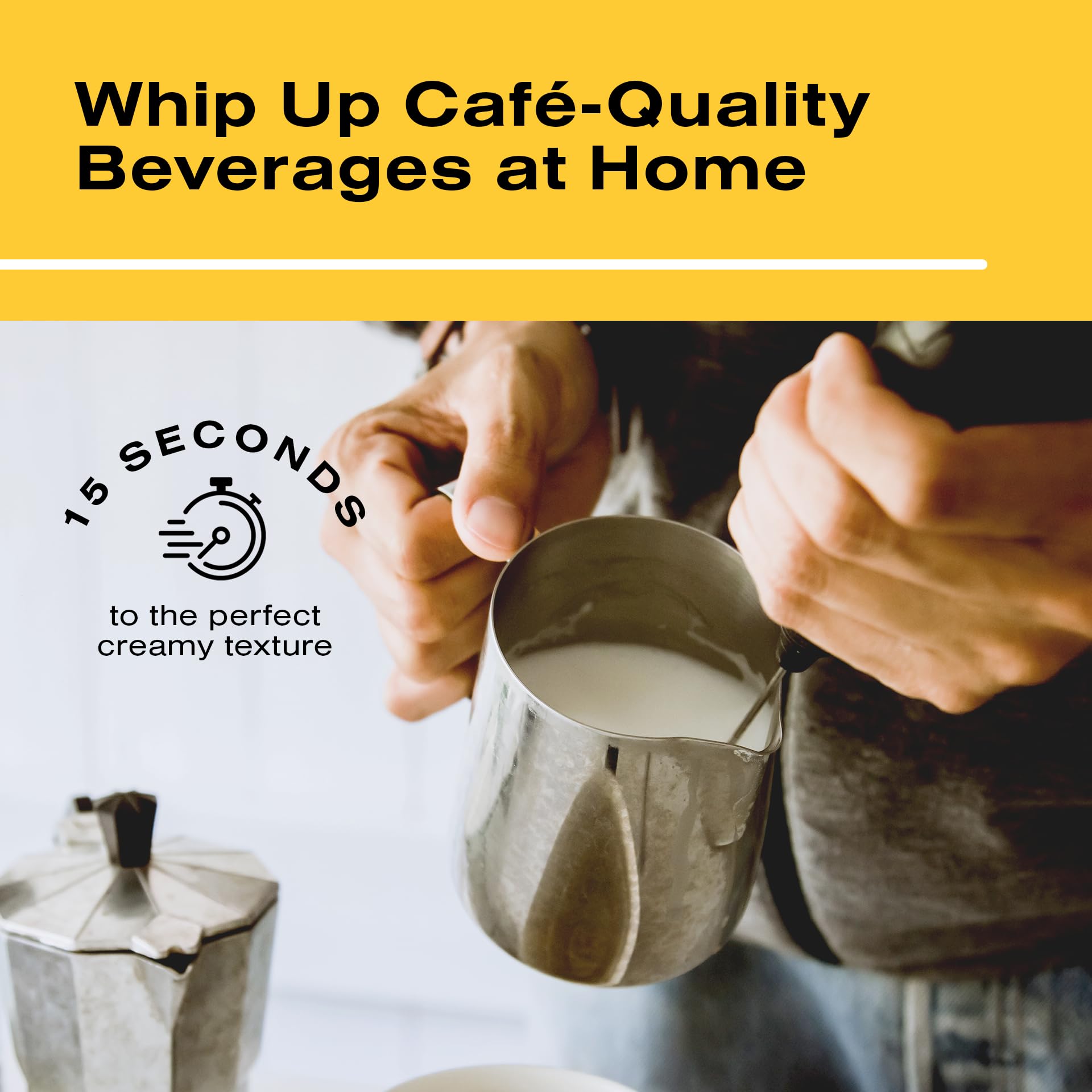 - BARISTA STYLE - Transport yourself to your favorite café every morning with this mini frother. Enjoy creating a rich, creamy foam for your hot and cold drinks, just like a professional barista.