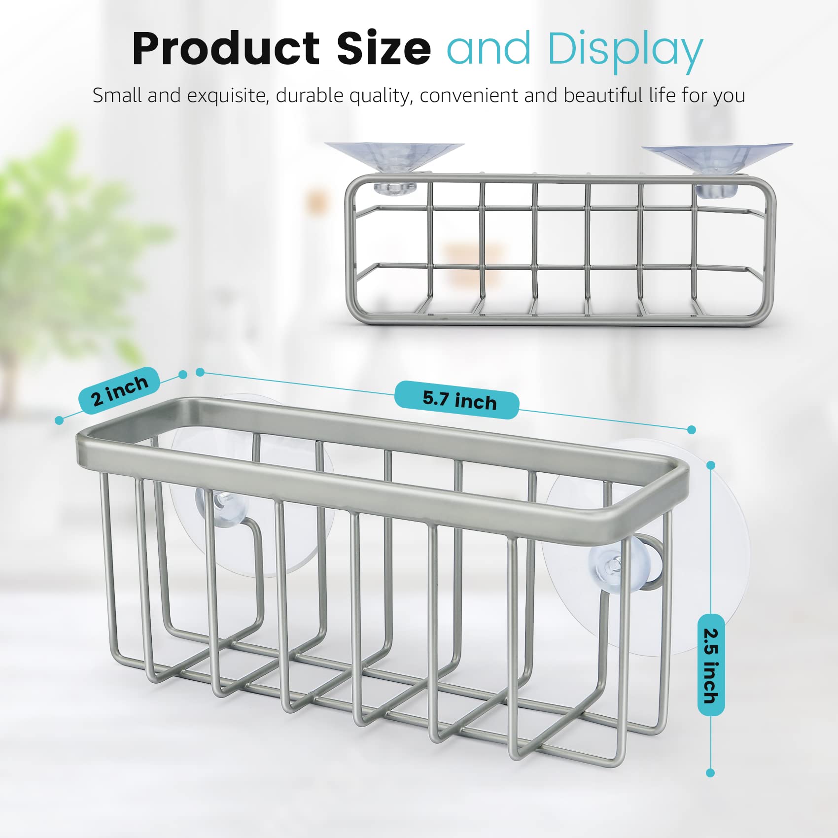 - Multi-Purpose:Sponge holder for kitchen sink accommodate sponge, scrubber, scouring pad, drain stopper etc.Dimension: 5.7*2*2.5 Inch.