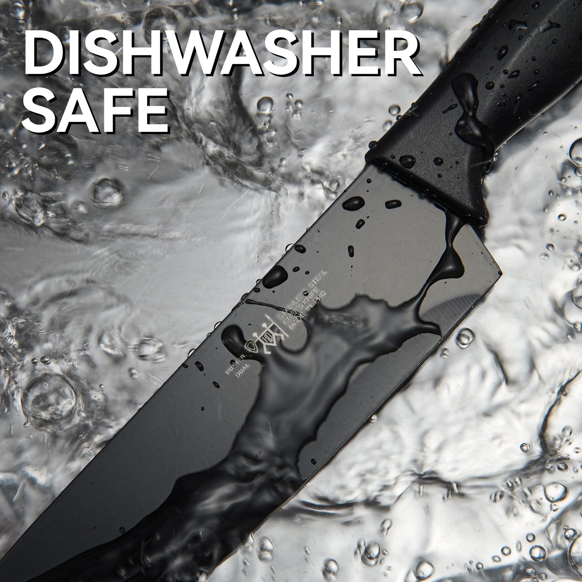 - HUNTER.DUAL 15-Piece Kitchen Knife Set with Self-Sharpening Block – Dishwasher Safe, Anti-Slip Handles, Black