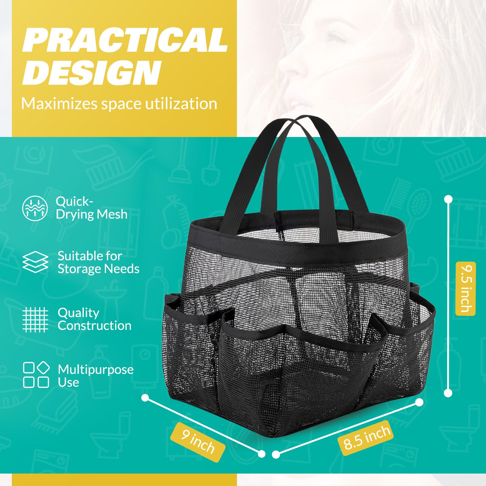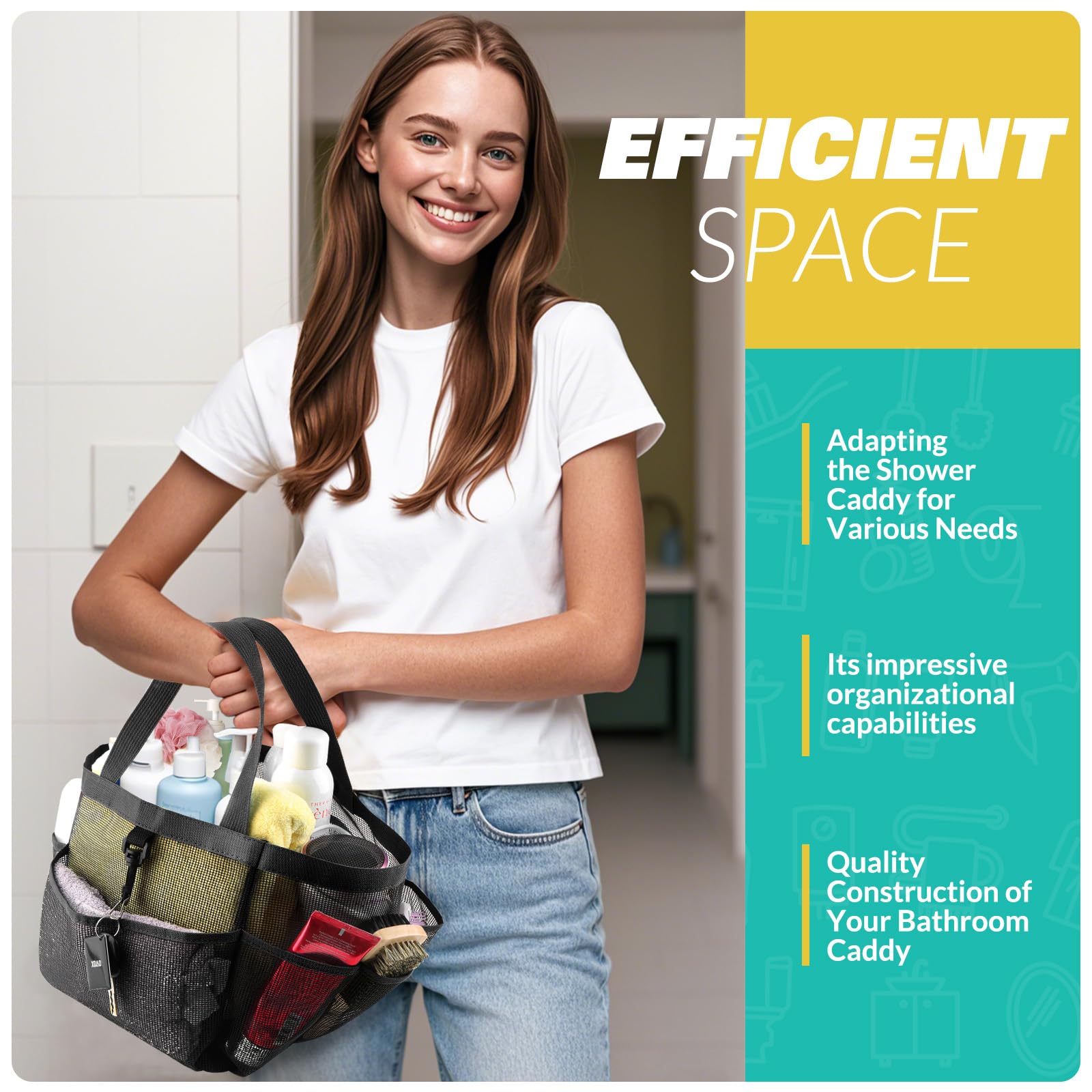 - LOYEE Mesh Shower Caddy Portable for College Dorm Room Essentials with 8 Pockets, Shower Bag for Beach, Swimming, Gym, Travel, Bathroom(Black)