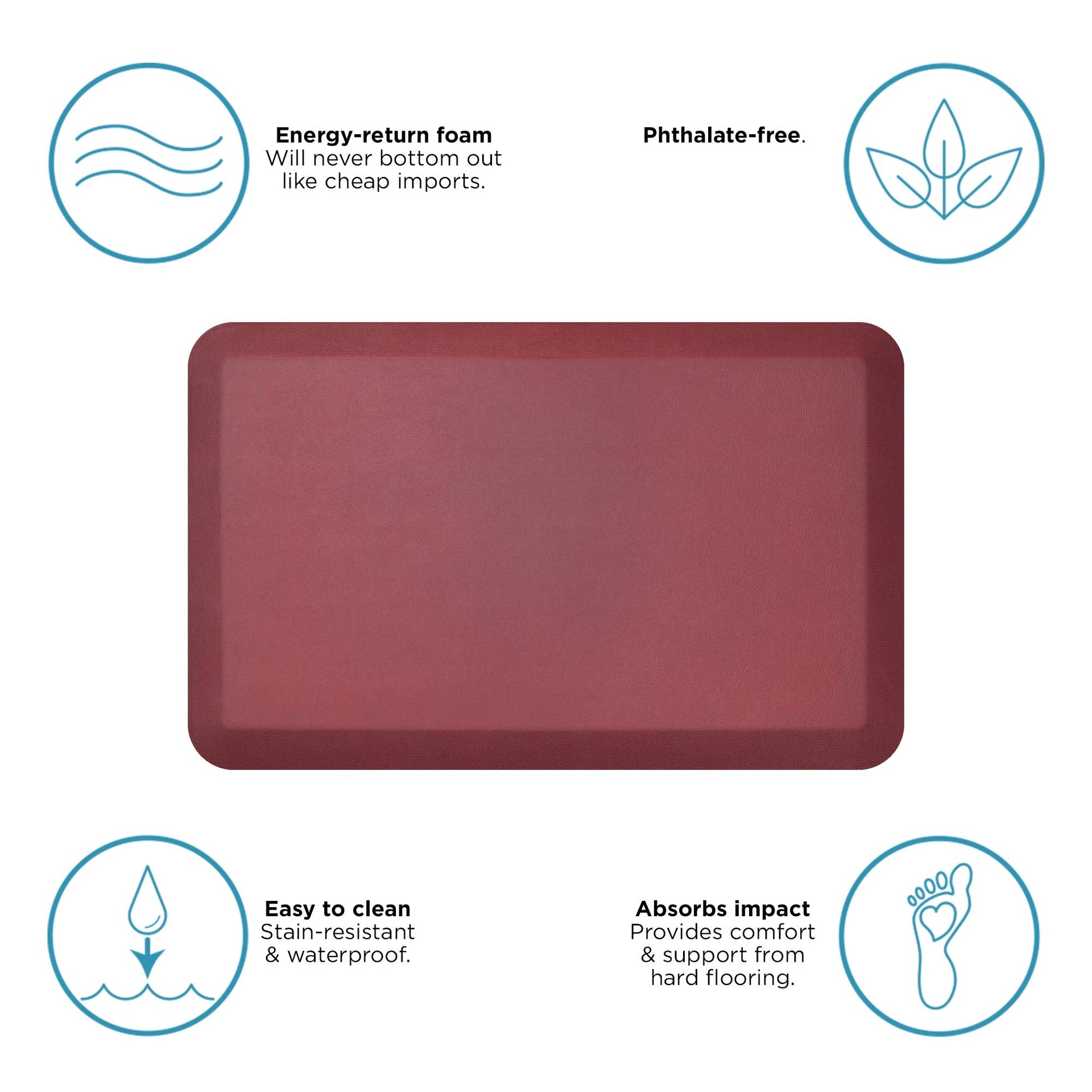 - NewLife by GelPro Anti-Fatigue Designer Comfort Kitchen Floor Mat, 20" x32”, Leather Grain Cranberry