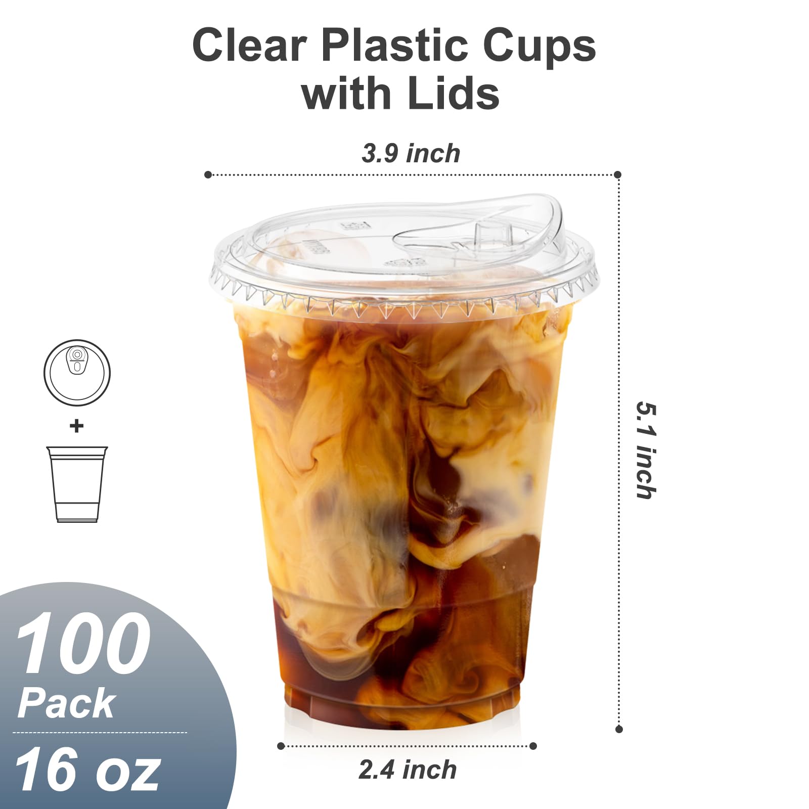 Details: Dealusy 100 Pack - 16 oz Clear Plastic Cups with Lids, Sturdy & Food Safe Iced Coffee Cups with lids, Disposable Plastic Smoothie Cups for Cold Drinks, Sip Lids