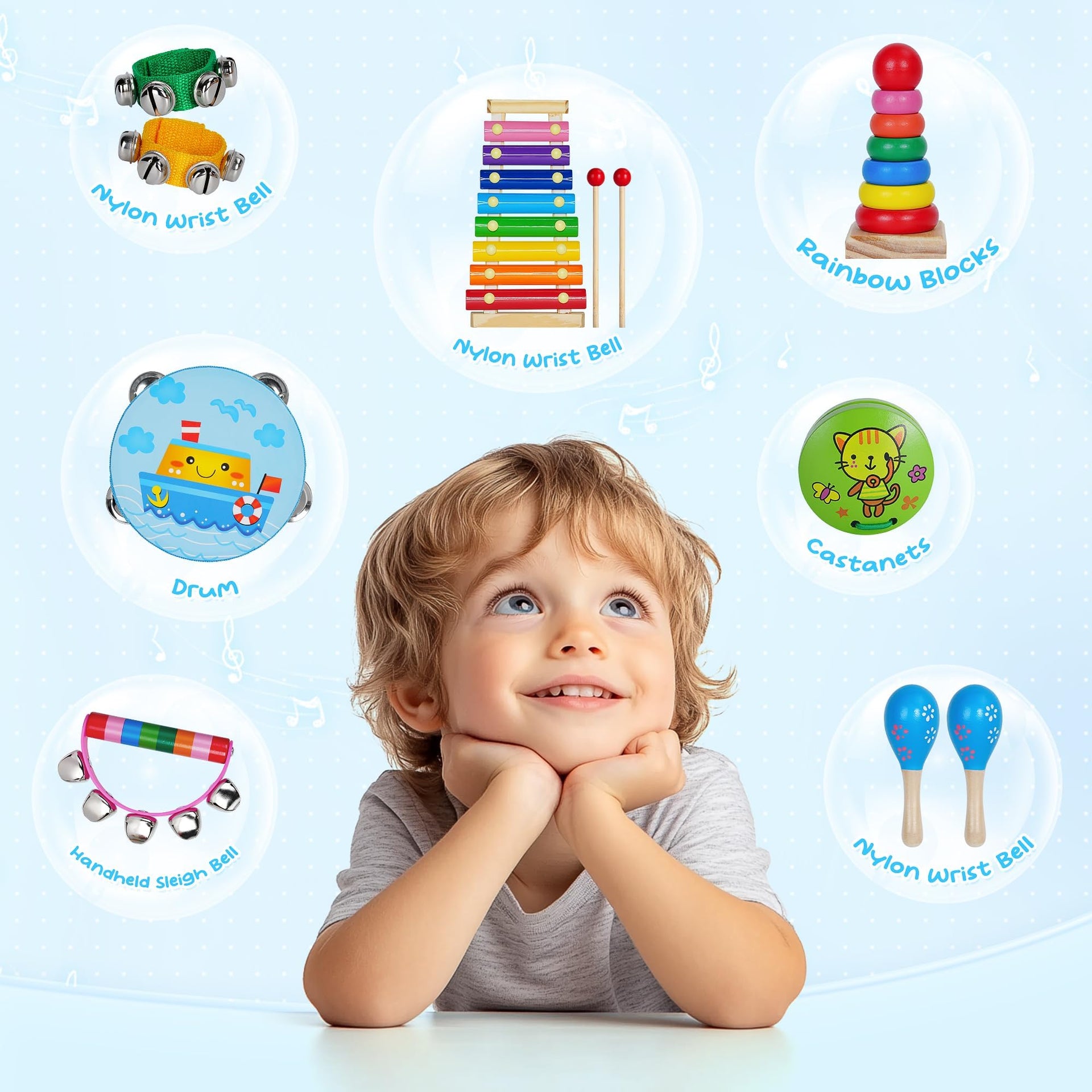 Childom Toddler Musical Instruments Set – Xylophone, Maracas & Wooden Toys, Educational Fun for Kids, Birthday & Christmas Gifts