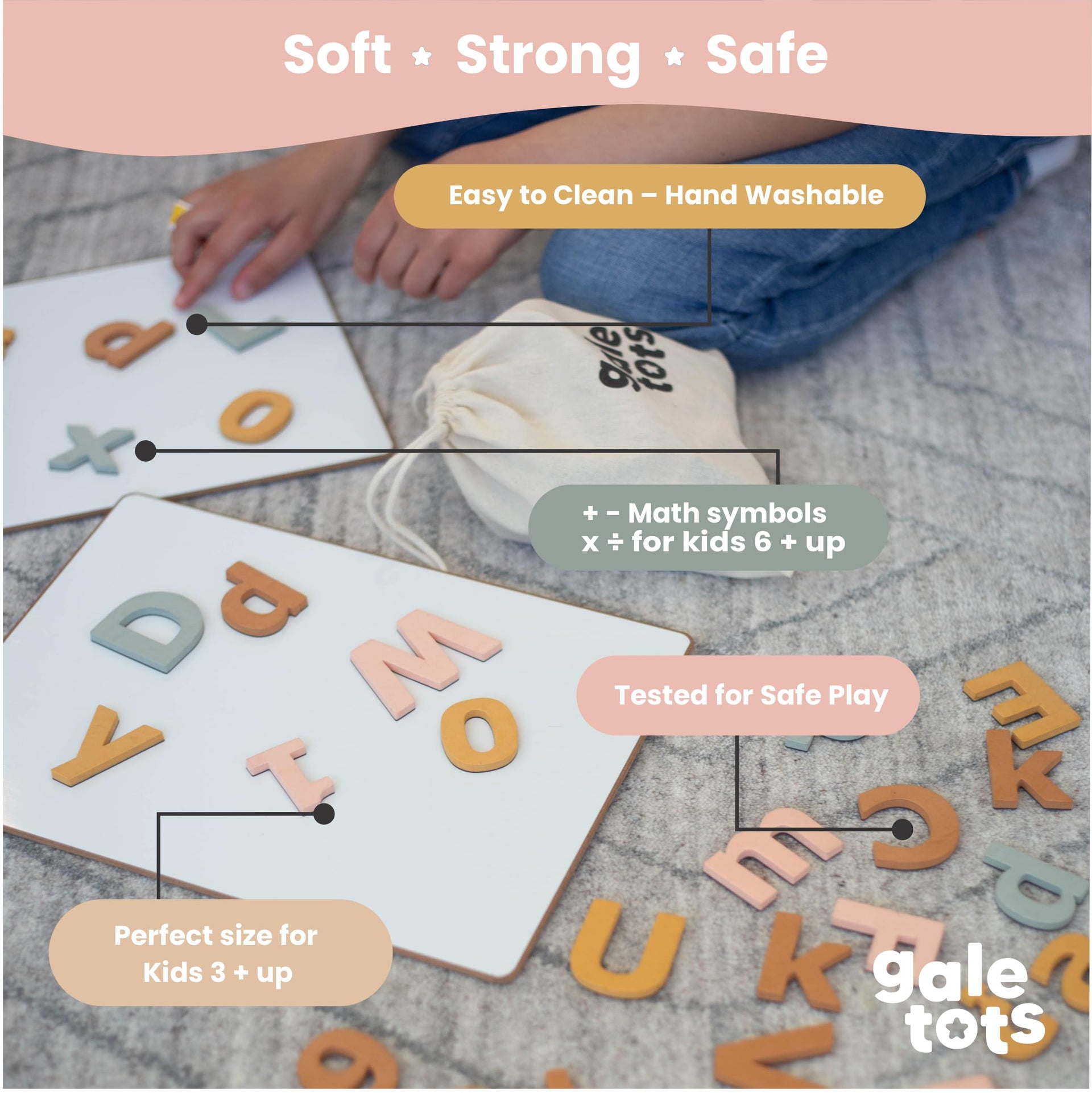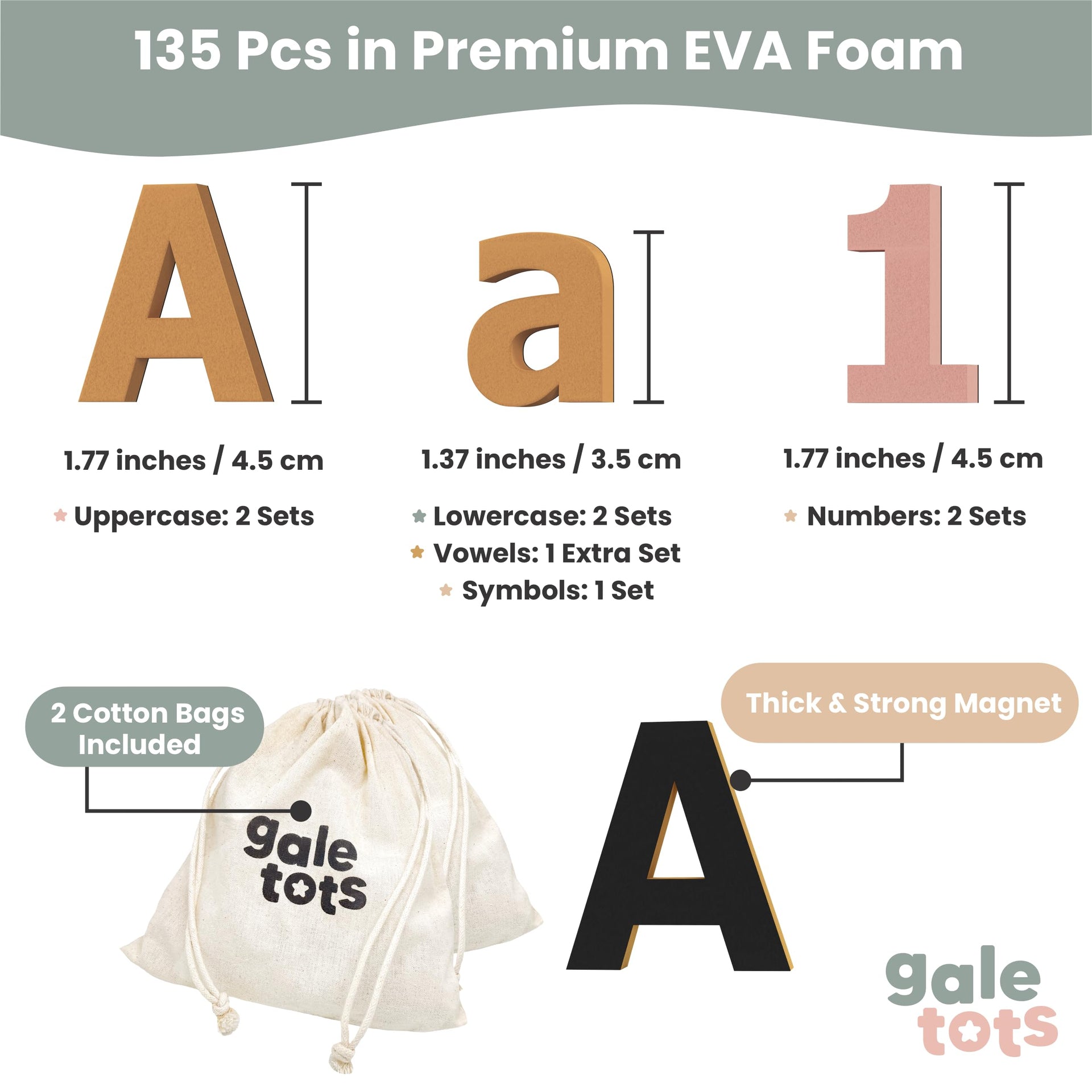 - Gale Tots Magnetic Letters and Numbers - 135 PCS Alphabet Magnets in Soft Foam - Neutral Aesthetic Colors ABC Fridge Magnets for Kids