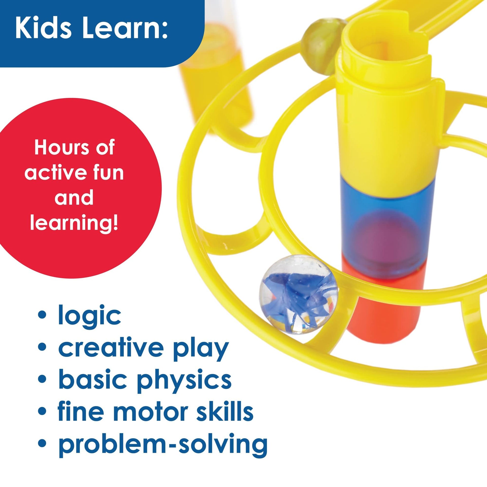 - Creative Play: Build a Marble Run track that twists, turns, races and spins marbles at incredible speeds! Create fantastic marble action at every turn.