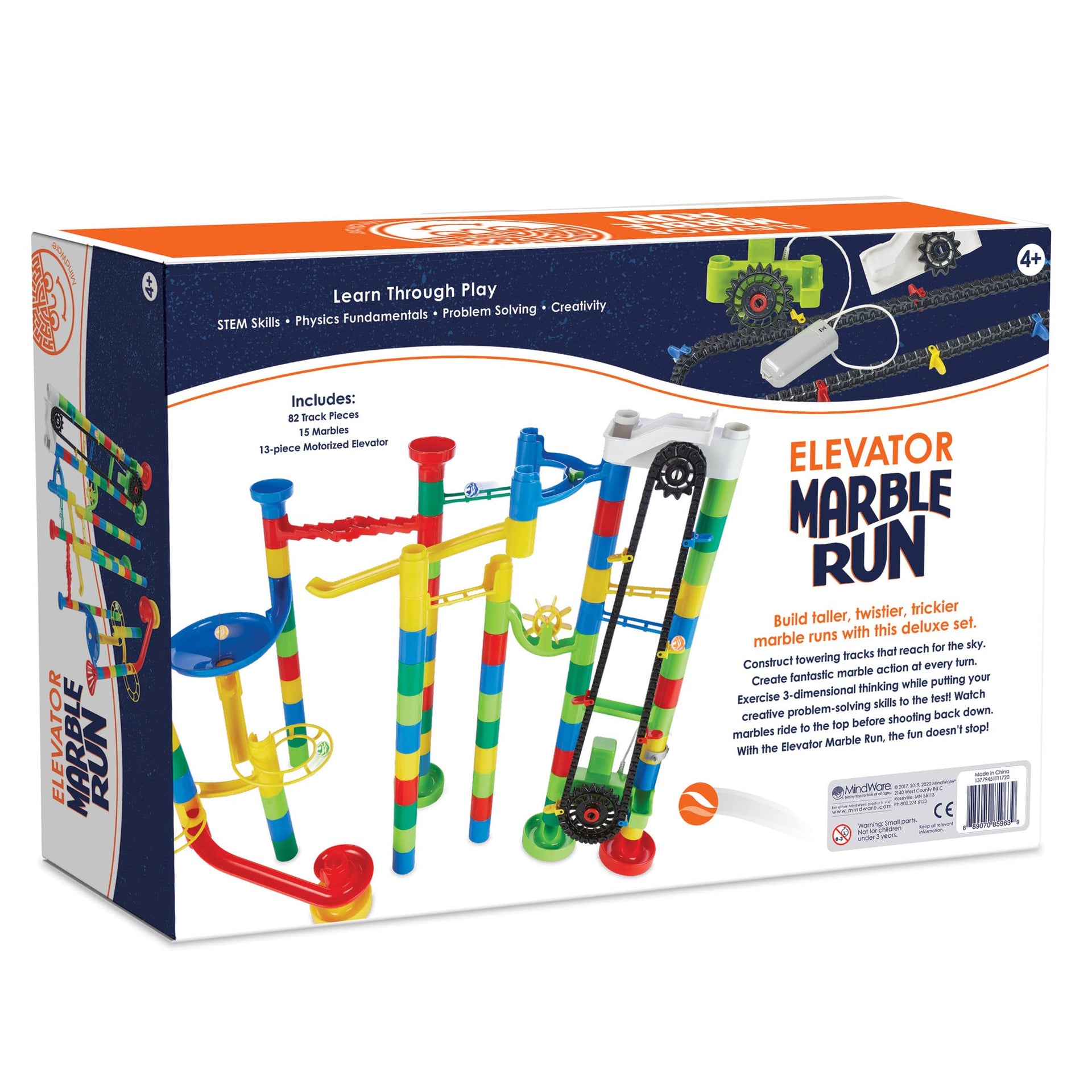 - MindWare Marble Run 110 Piece Building Set with 82 Track Pieces, 15 Marbles and Motorized Elevator