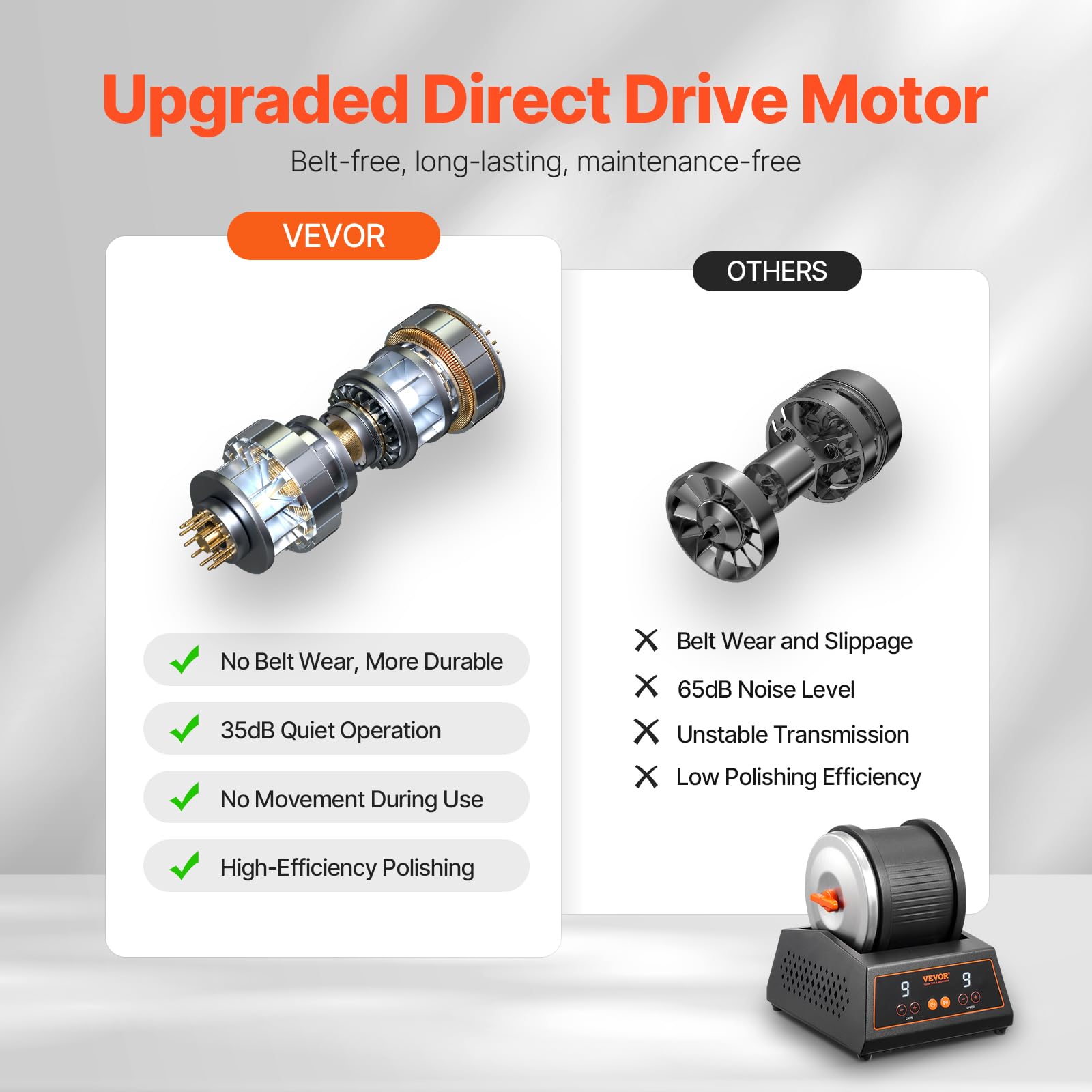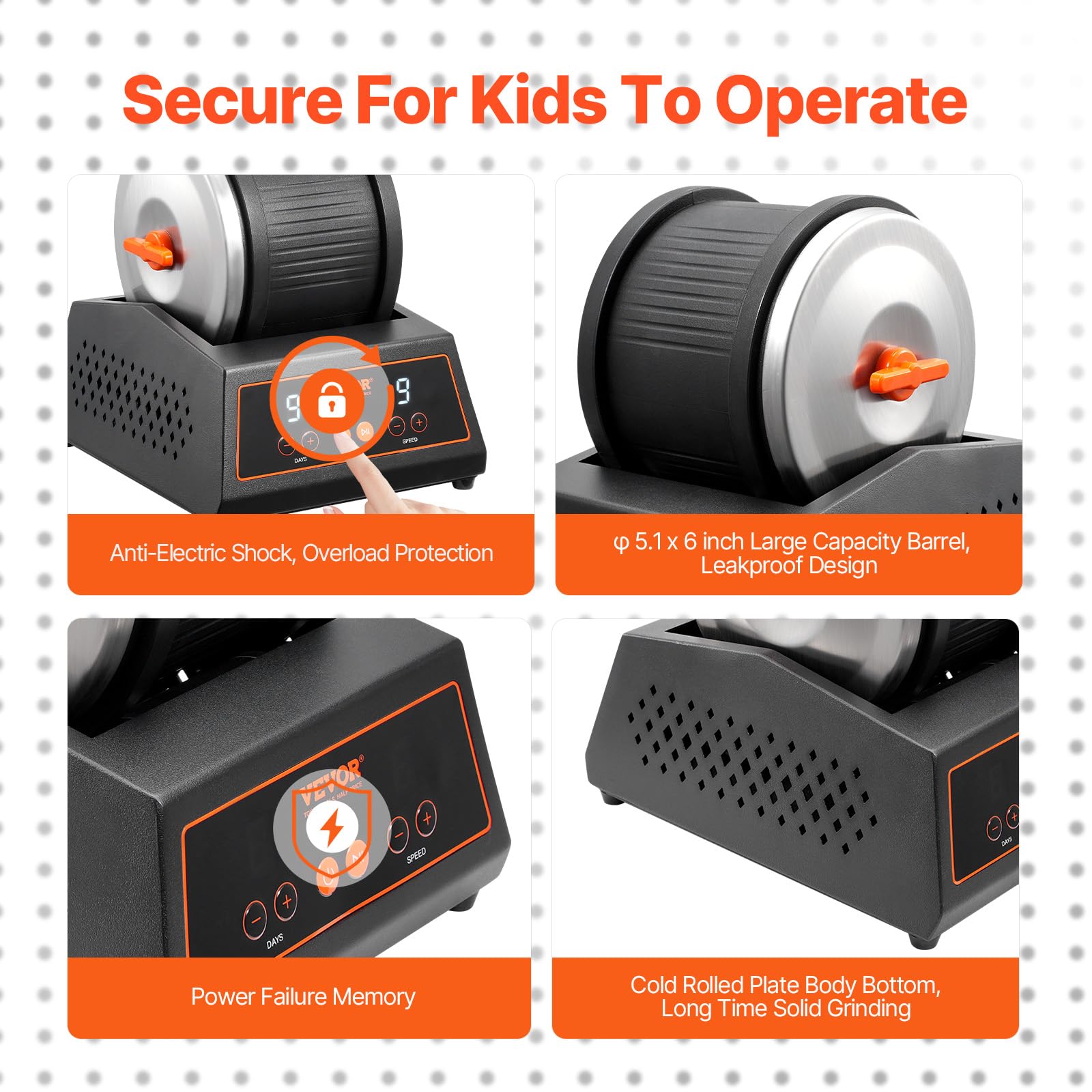 VEVOR 4 lbs Rock Tumbler Machine – 9-Speed Stone Polisher with 9-Day Timer, Direct Drive Motor, Cold-Rolled Steel, for Kids & Adults