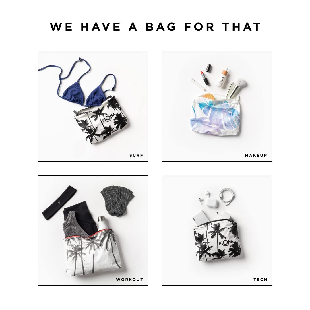 - This versatile pouch goes beyond the beach. Use it as a wet/dry bag for swimsuits, a makeup bag for cosmetics, a diaper bag organizer, a travel organizer for essentials, a clutch purse for a night out, or an everyday organizer for keys, cash, and cards.
