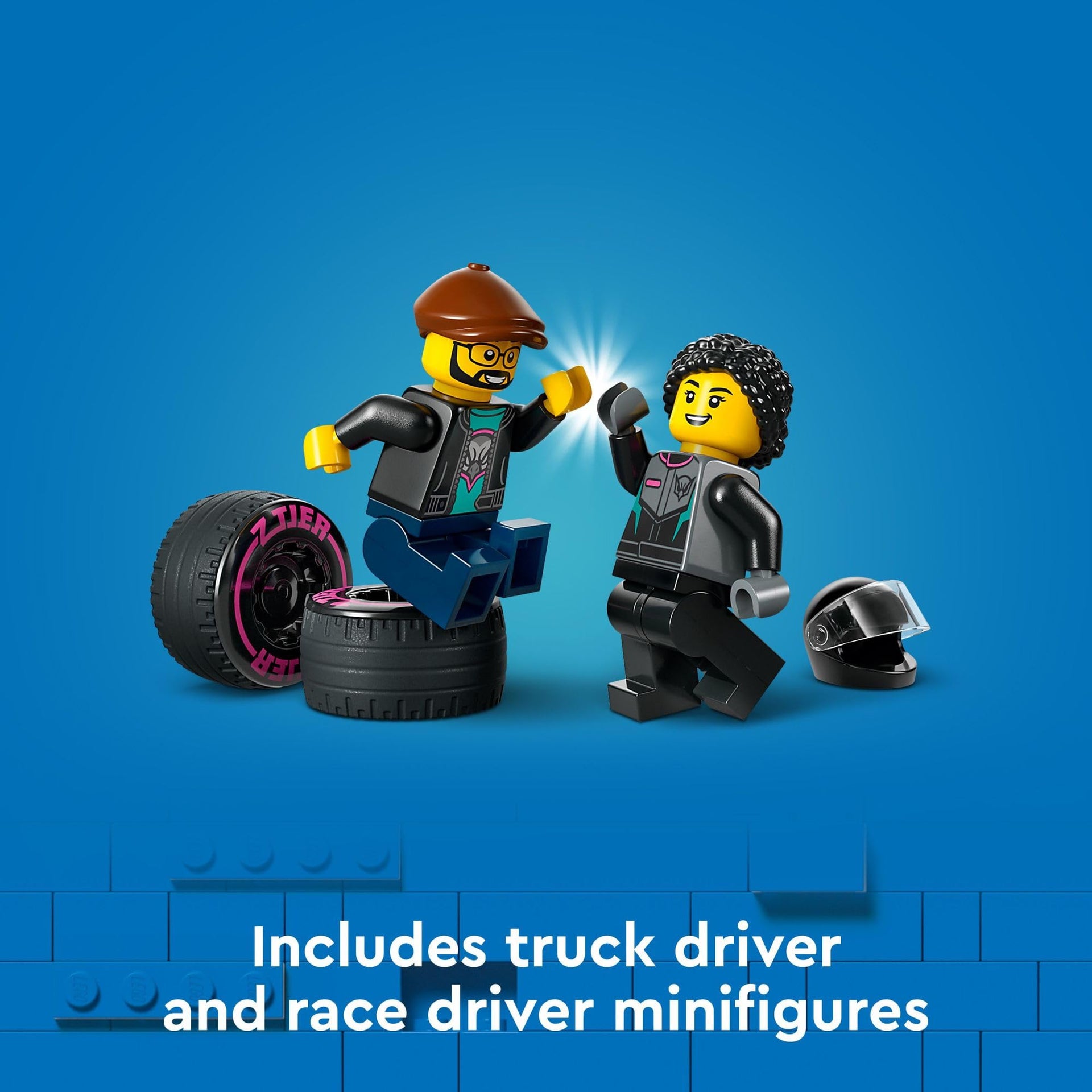 LEGO City Race Car & Carrier Truck Playset 60406 – Vehicle Transporter with Adjustable Ramp, Race Car, Minifigures, Fun Gift for Kids 6+