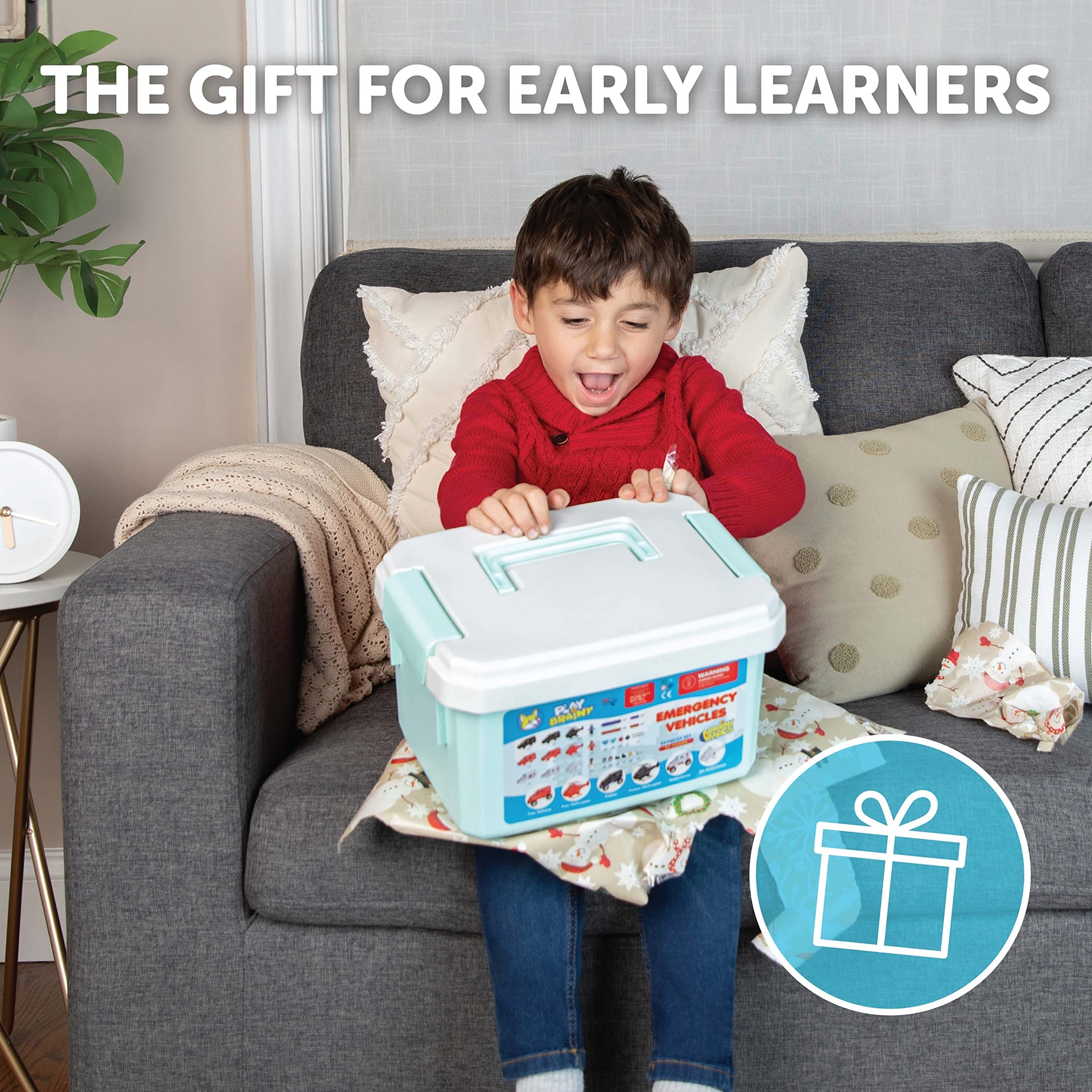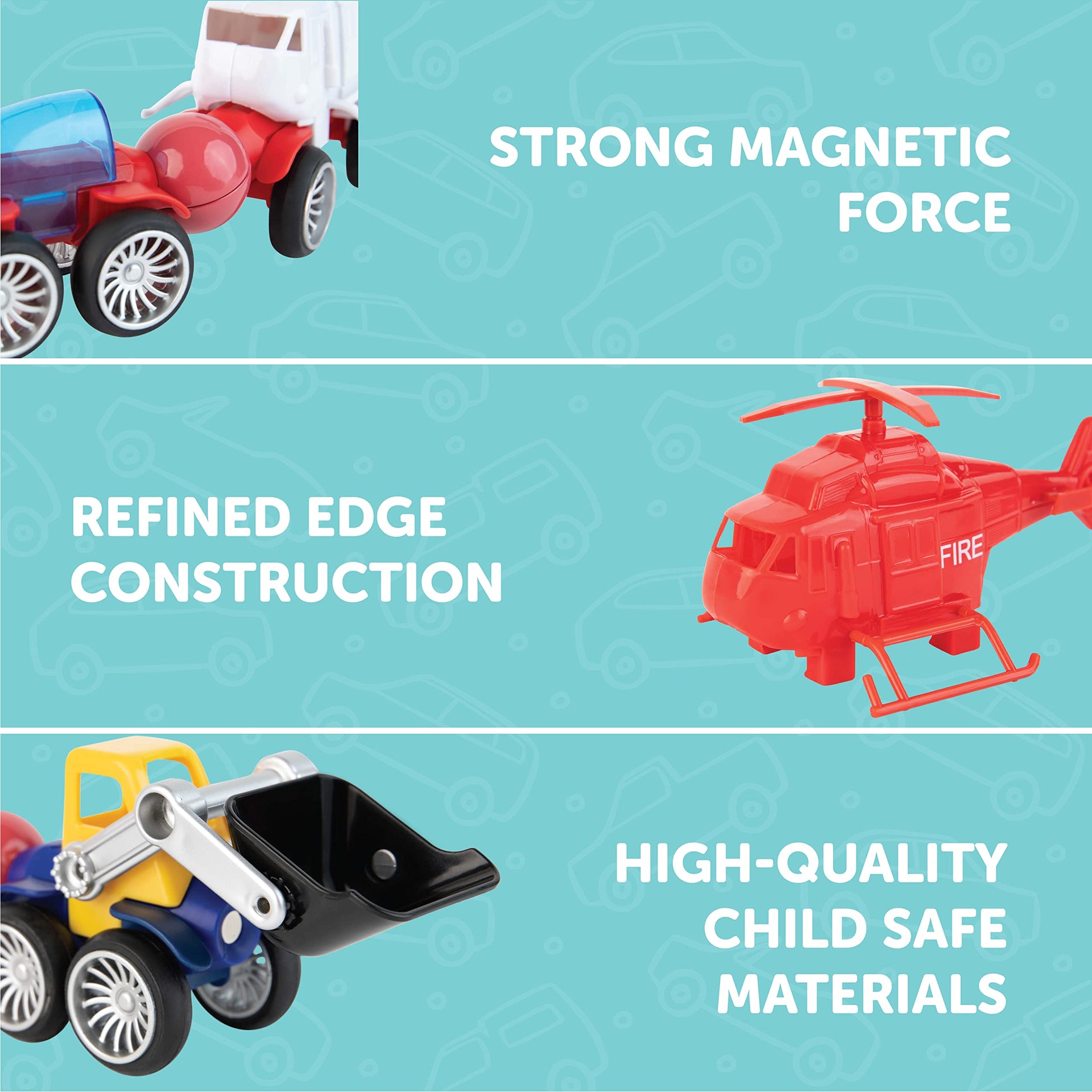 PLAY BRAINY 59-Piece Magnetic Emergency Vehicle Toy Set – Fire Truck, Ambulance, Helicopter & More for Kids 3+ Years