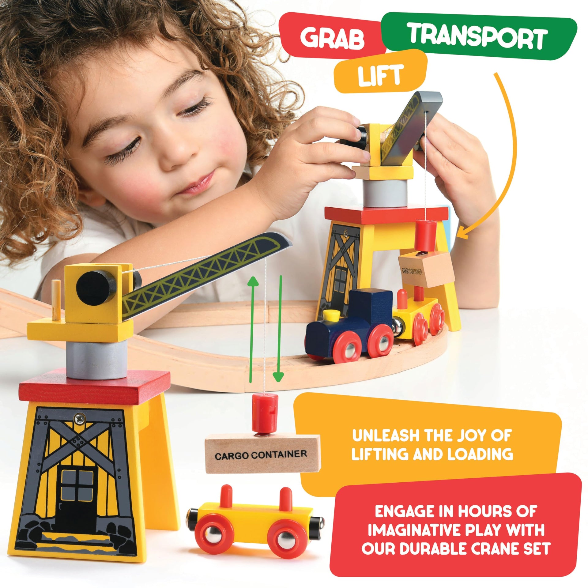 Play22 Wooden Train Set Toddler Toys - 38 Pieces Wood Train Track Set for Toddlers 3-4 Years with Crane, Bridge & Accessories