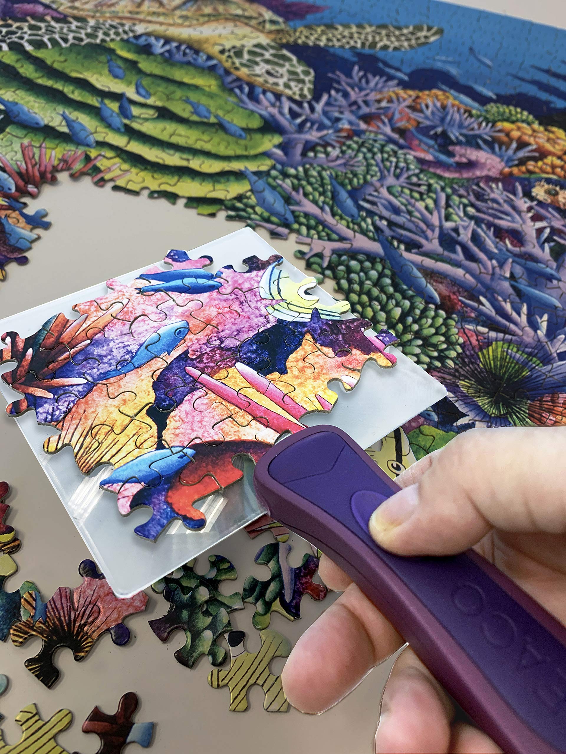 Details: A perfect solution for moving your puzzle pieces! You can now lift and move completed jigsaw sections with the Puzzle Scoop. It comes with a built-in LED light to illuminate the area that you are working on and acts as a magnifying lens with three times the magnifying capabilities. A great gift for the puzzle lover!