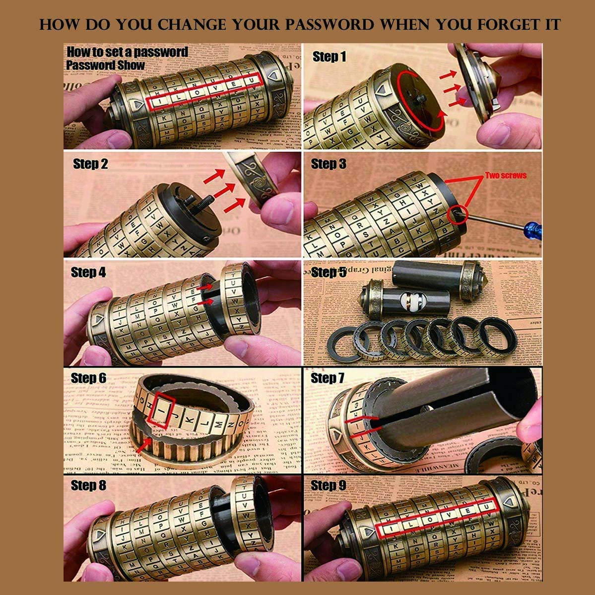 Cryptex Da Vinci Code Mini Lock Box – Puzzle with Hidden Compartment, Romantic Anniversary & Valentine’s Gift for Her, Him, or Girlfriend
