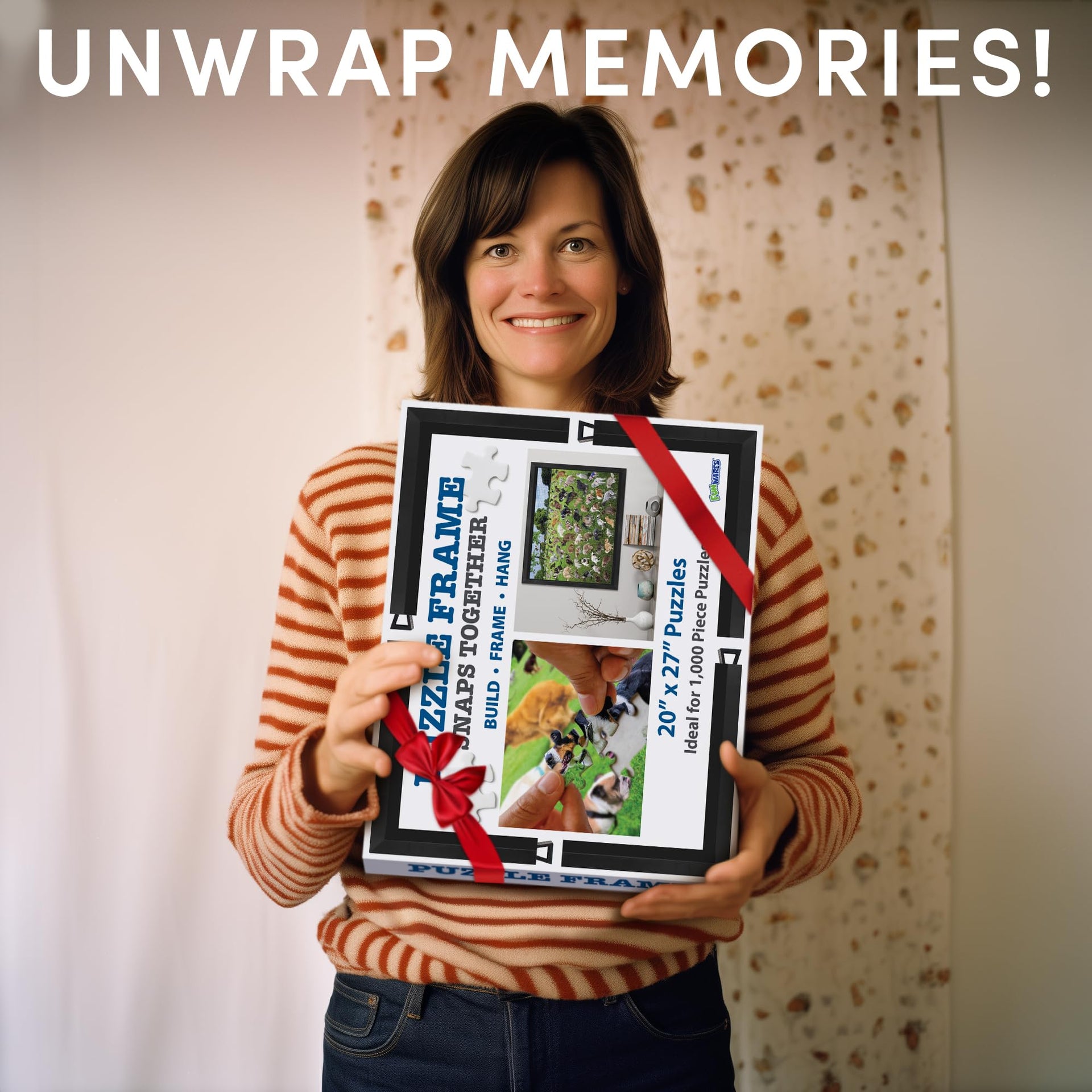 Funwares 20x27 Puzzle Frame – Matte Black Finish, Easy Assembly, Lightweight Design, Fits 1000 Piece Puzzles, Built-In Hanging Hooks