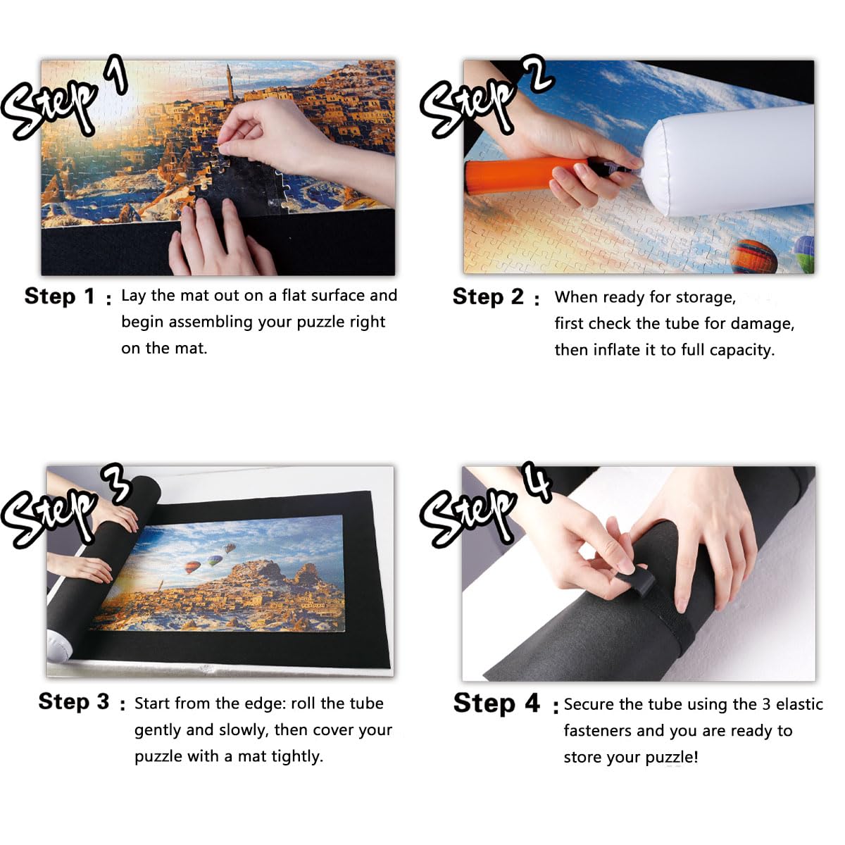 - 【Packing up your puzzle has never been easier!】 Just follow these 4 simple steps: 1.Inflate the tube 2.Roll up the mat 3.Secure with the 3 Velcro straps 4.Slip it into the storage bag. Super simple, right? It’s that easy—and that’s why puzzle lovers trust us! Simple, quick, and hassle-free—just the way it should be!