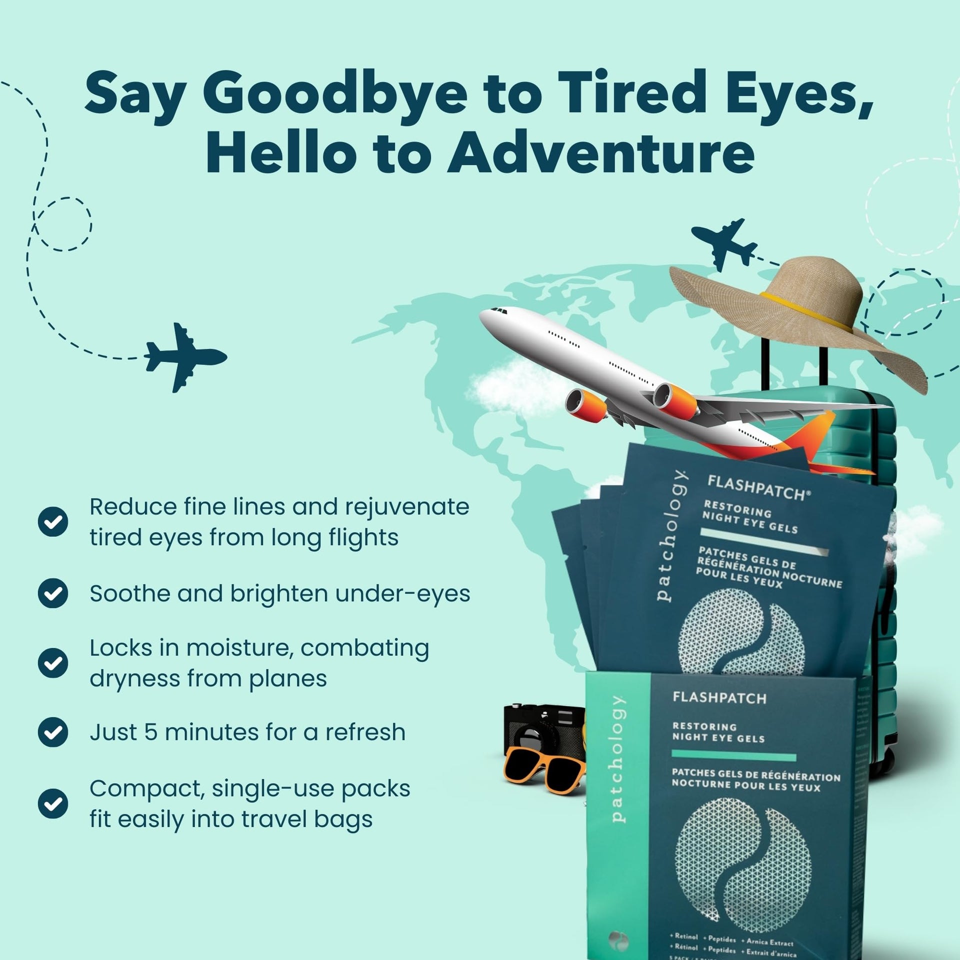 - SELF-CARE ESSENTIAL: Treat your eyes with Patchology’s restoring gel patches. Revive tired eyes, smooth wrinkles, and enhance your glow. A must-have in your anti-aging travel skincare routine for on-the-go pampering and radiant results.