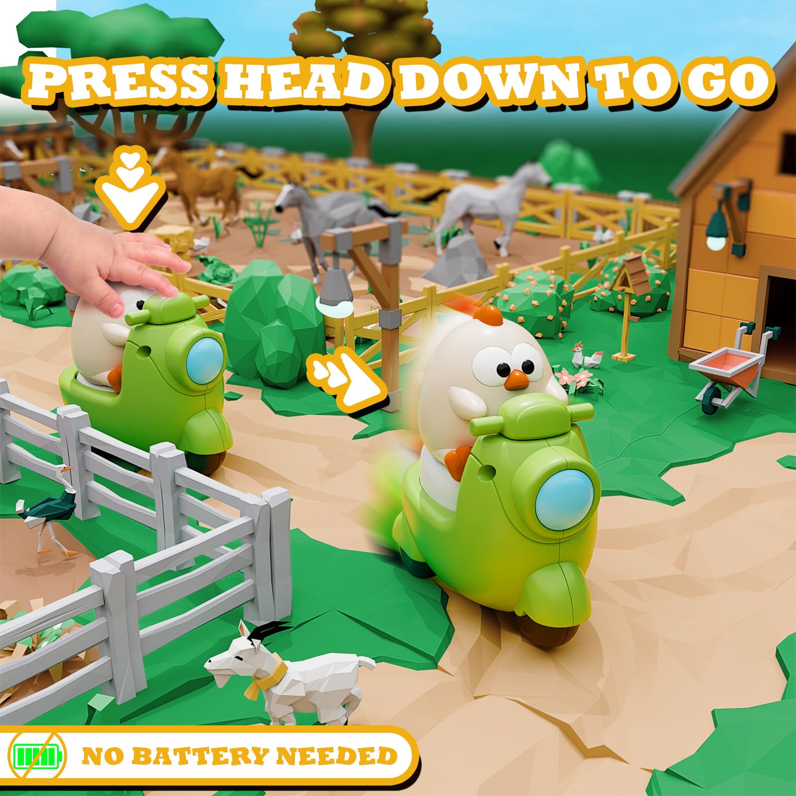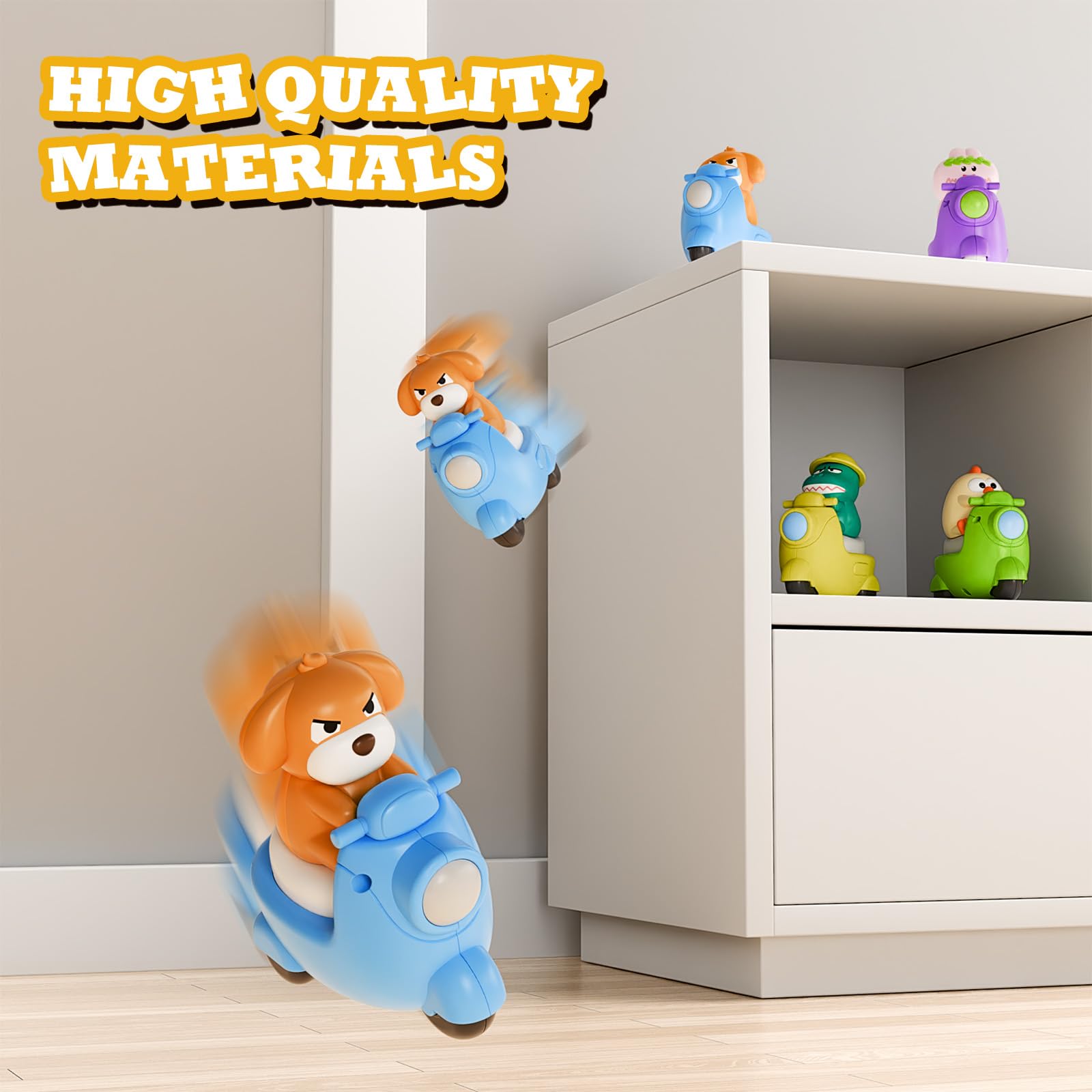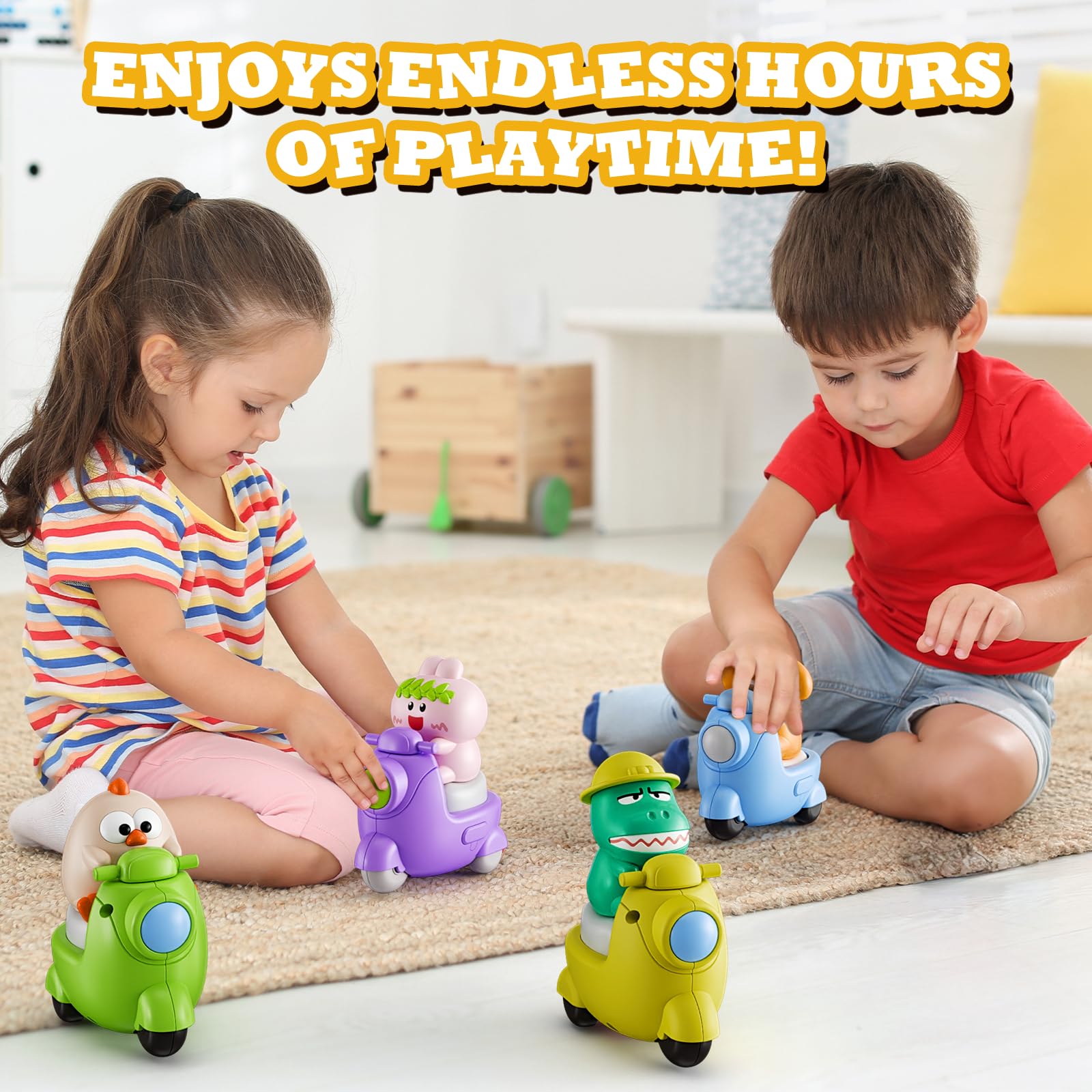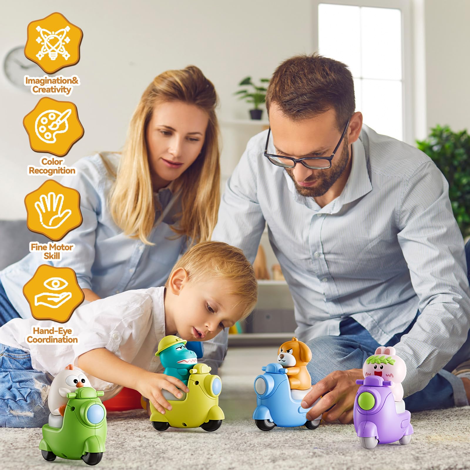 - 【Press & Go Action】Battery-free press-powered fun! Press the enlarged animal head to store energy, then release for smooth gliding action. Builds cause-effect understanding and basic physics concepts through play – ideal toys for 1 year old boy cognitive development.