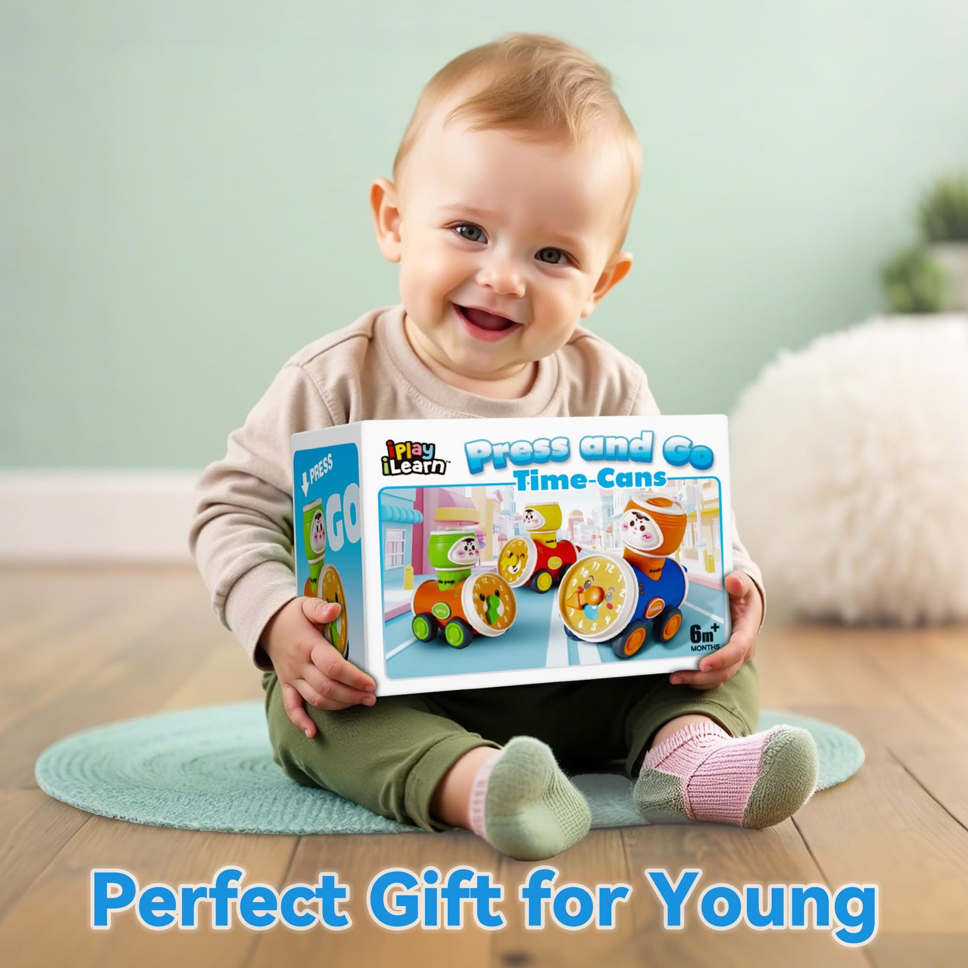 - iPlay iLearn Press & Go Car Toy Set for Toddlers 1-3, Friction Push Racing Cars, Infant Vehicle Playset, 1st Birthday Gift for Boys & Girls