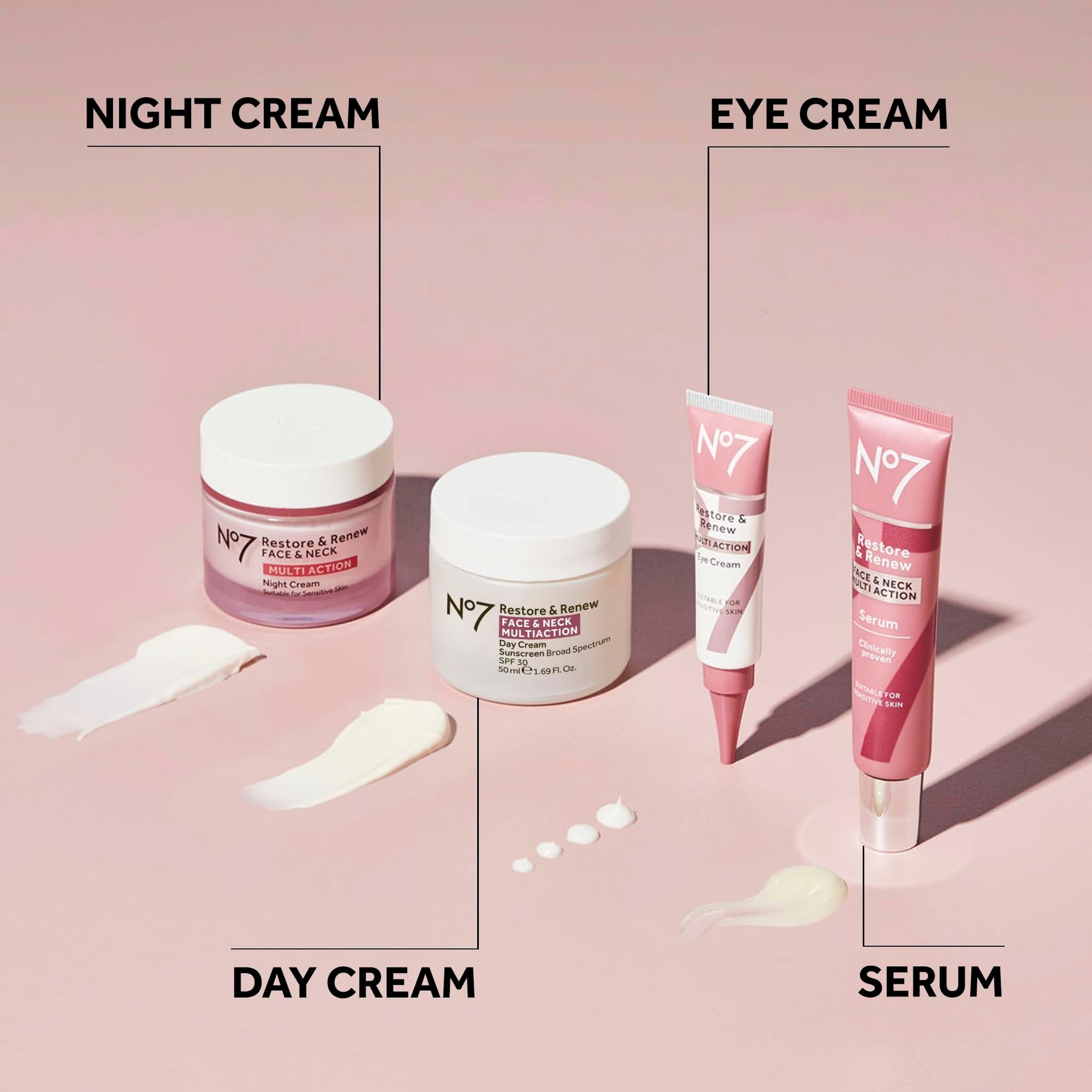 - No7 Restore & Renew Multi-Action Night Cream for Face & Neck – Anti-Aging Moisturizer with Collagen, Hyaluronic Acid & Ceramides, 1.69 oz