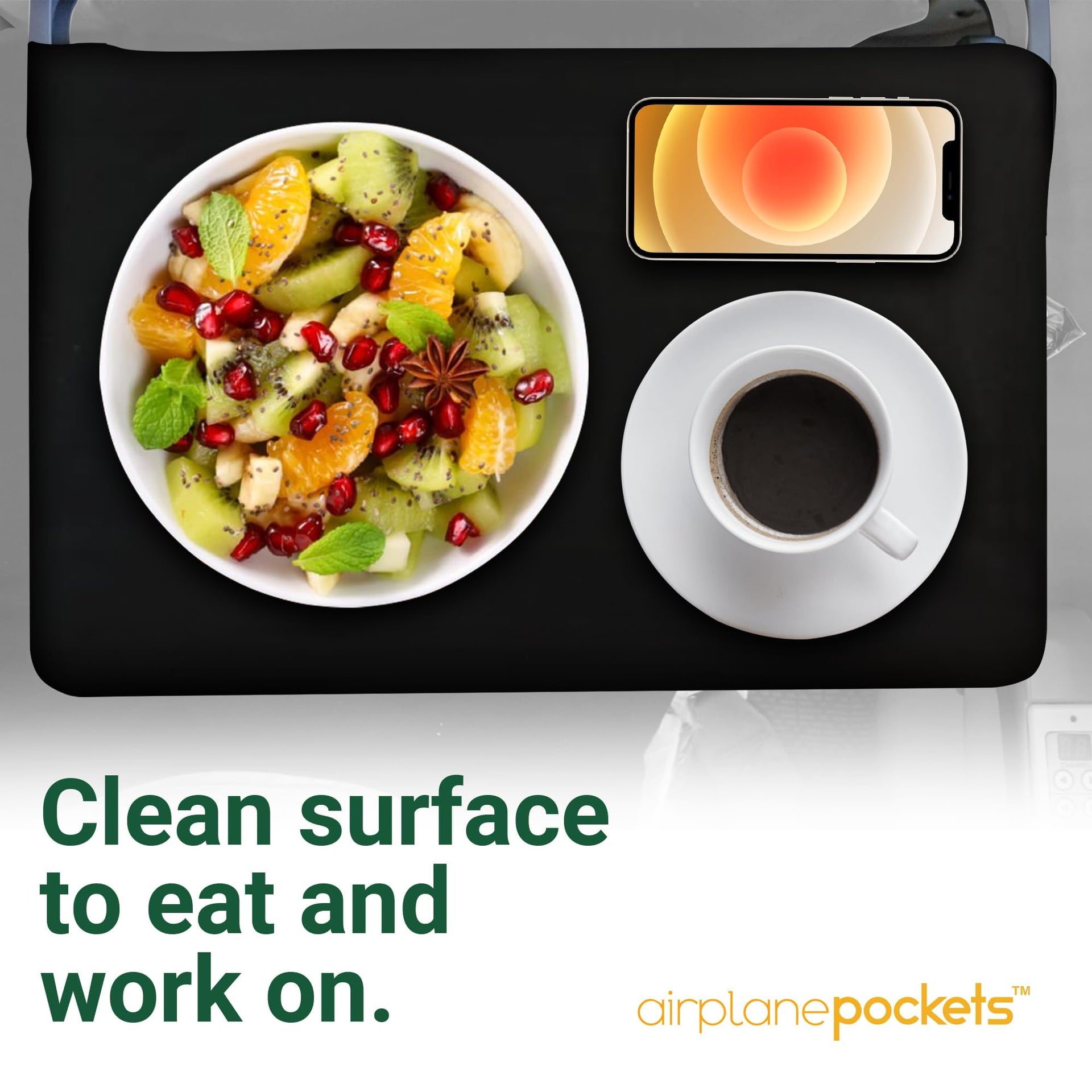 - KEEP YOUR SPACE CLEAN AND ORGANIZED: The Airplane Pockets airplane tray cover offers a clean, sanitary surface for your tray table, helping you stay organized during flights. offering a tidy spot for your travel gadgets, eating, and working. It also doubles as an airplane seat organizer and backseat organizer, ensuring easy access to your items and keeping your space neat, with 4 expandable pockets reinforced with a 3/4" elastic ribbon to snuggly hold your items.