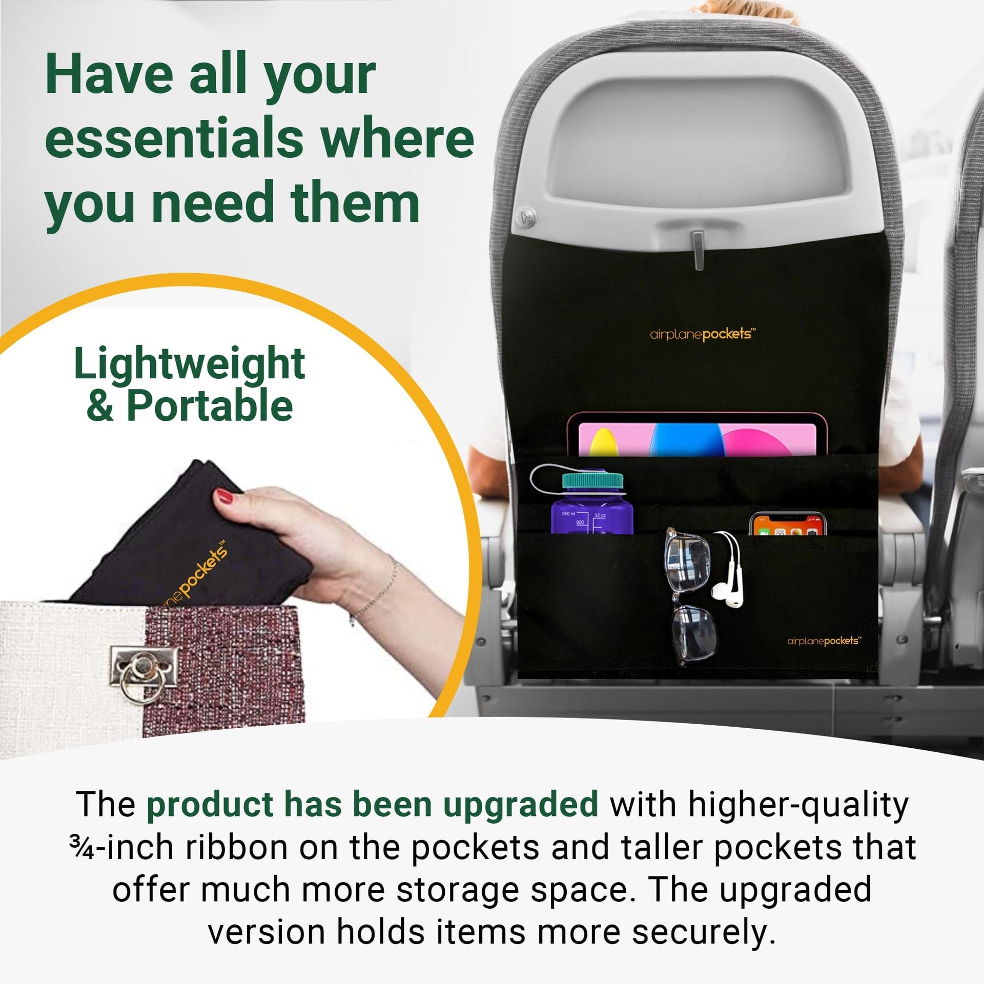 - Airplane Pockets - Airplane Accessories - Plane Travel Essentials - Travel Organizer - Seat Storage Organizer - Air Travel Essentials - Seat Back Organizer - International Travel Must Haves
