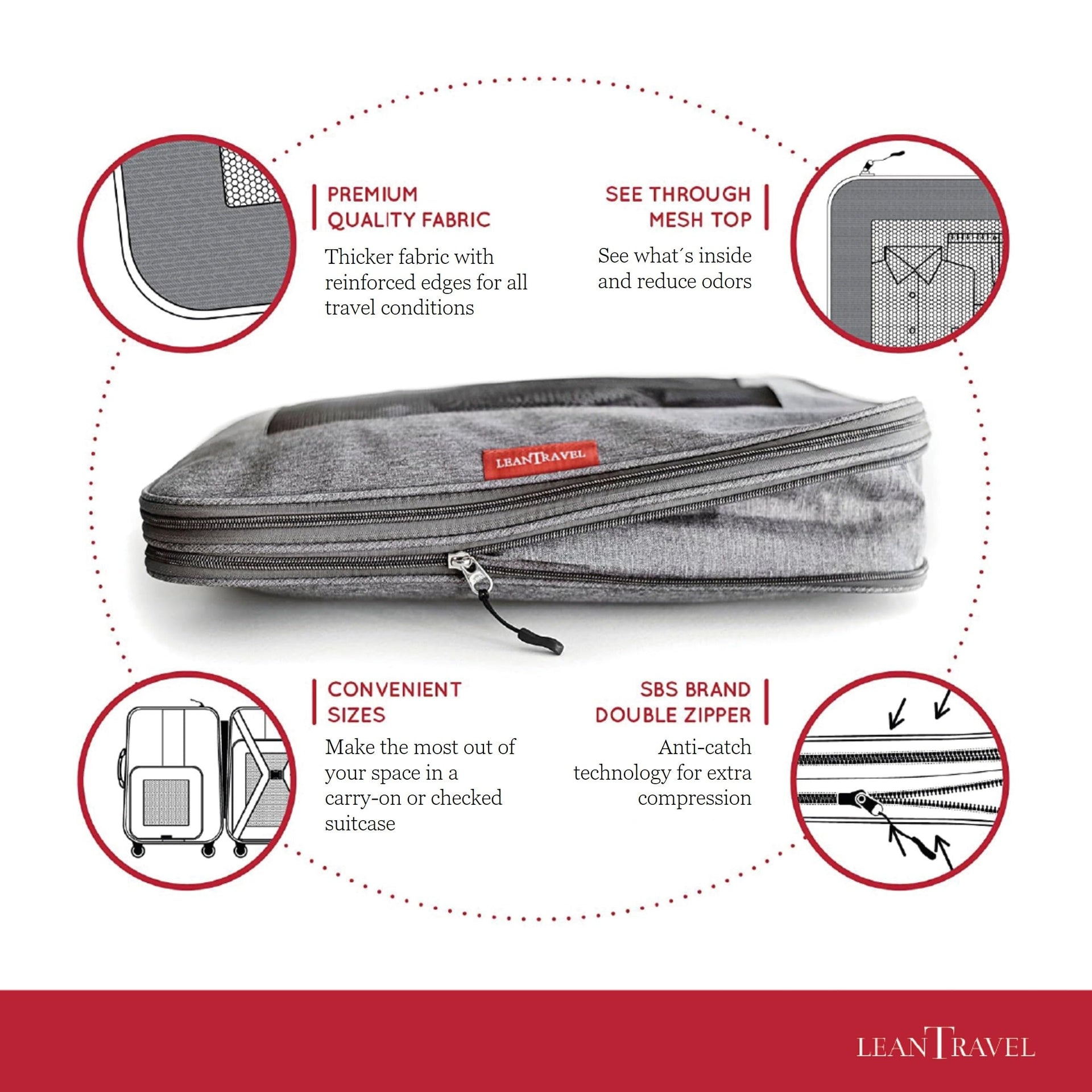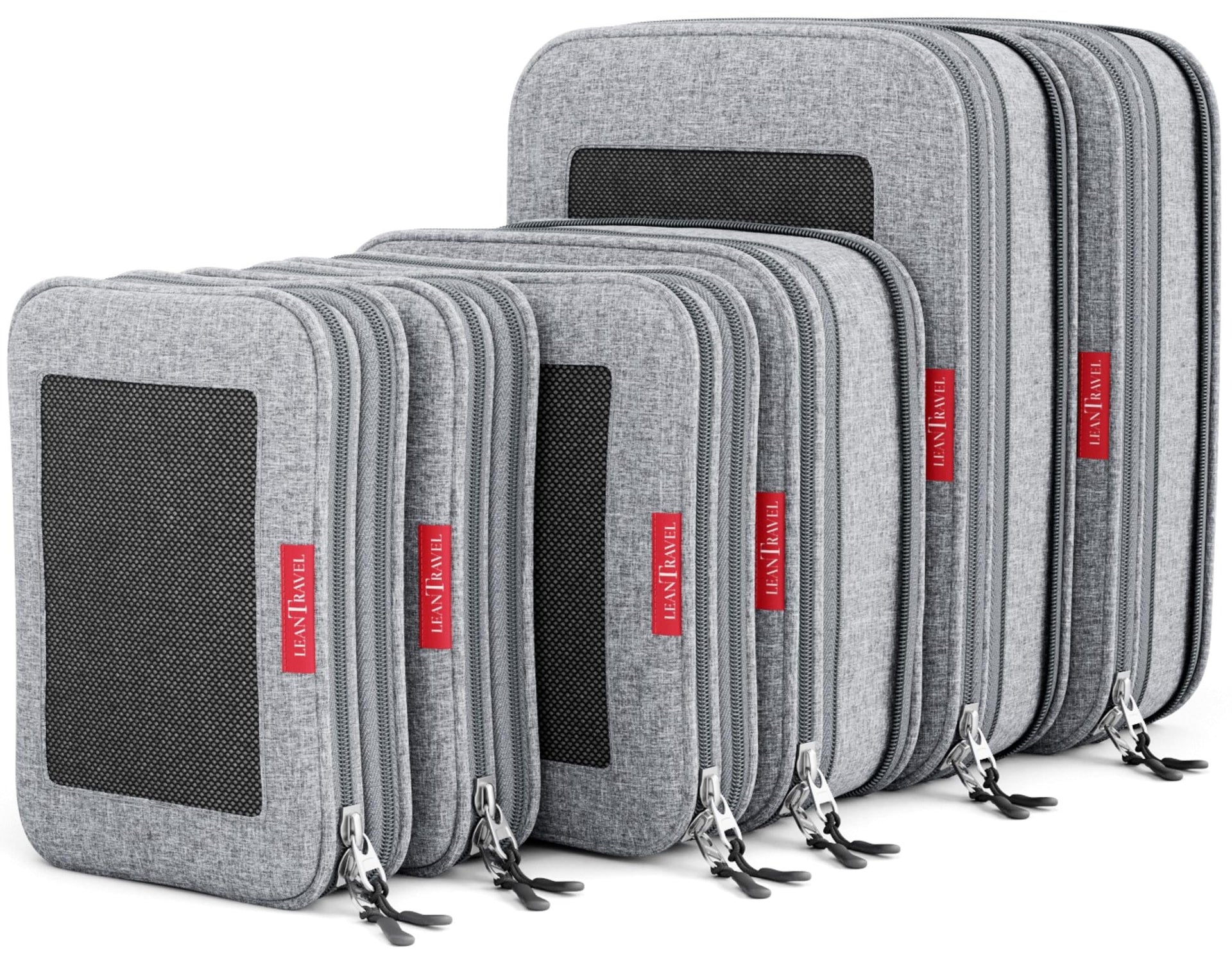 - LeanTravel Compression Packing Cubes for Travel Organizers with Double Zipper (6-Pack (2L+2M+2S), Grey)