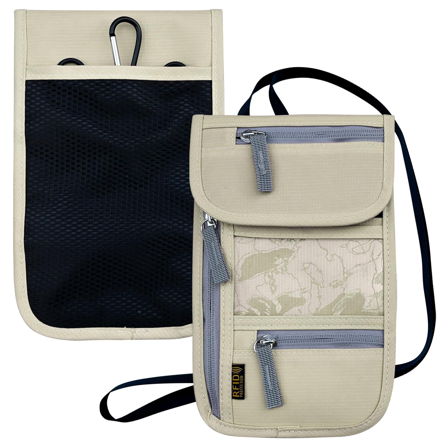 - Travel Neck Wallet – RFID Blocking Passport Holder with Adjustable Strap for Men & Women, Secure Cash, Cards & Travel Documents, Beige