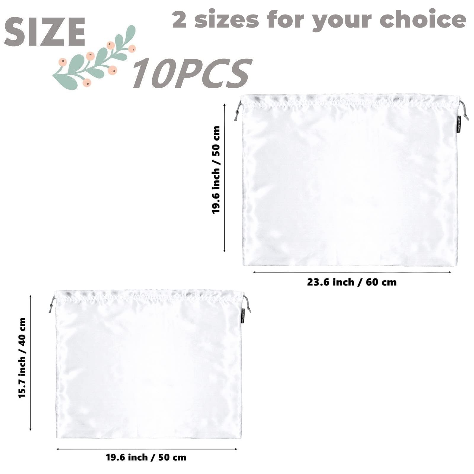 - Dust Bags for Handbags: You will get 10 pieces of purse dust bags for storage, 2 sizes for you to choose, L size: 15.75 ×19.69 inches (40×50 cm), XL Size: 19.69 × 23.62 inch, which will accommodate just about most handbag or purse, and shoes, small and lightweight, you can store all kinds of items and carry them easily when you go out, foldable and reusable, it won't take up space when you don't use it at home.