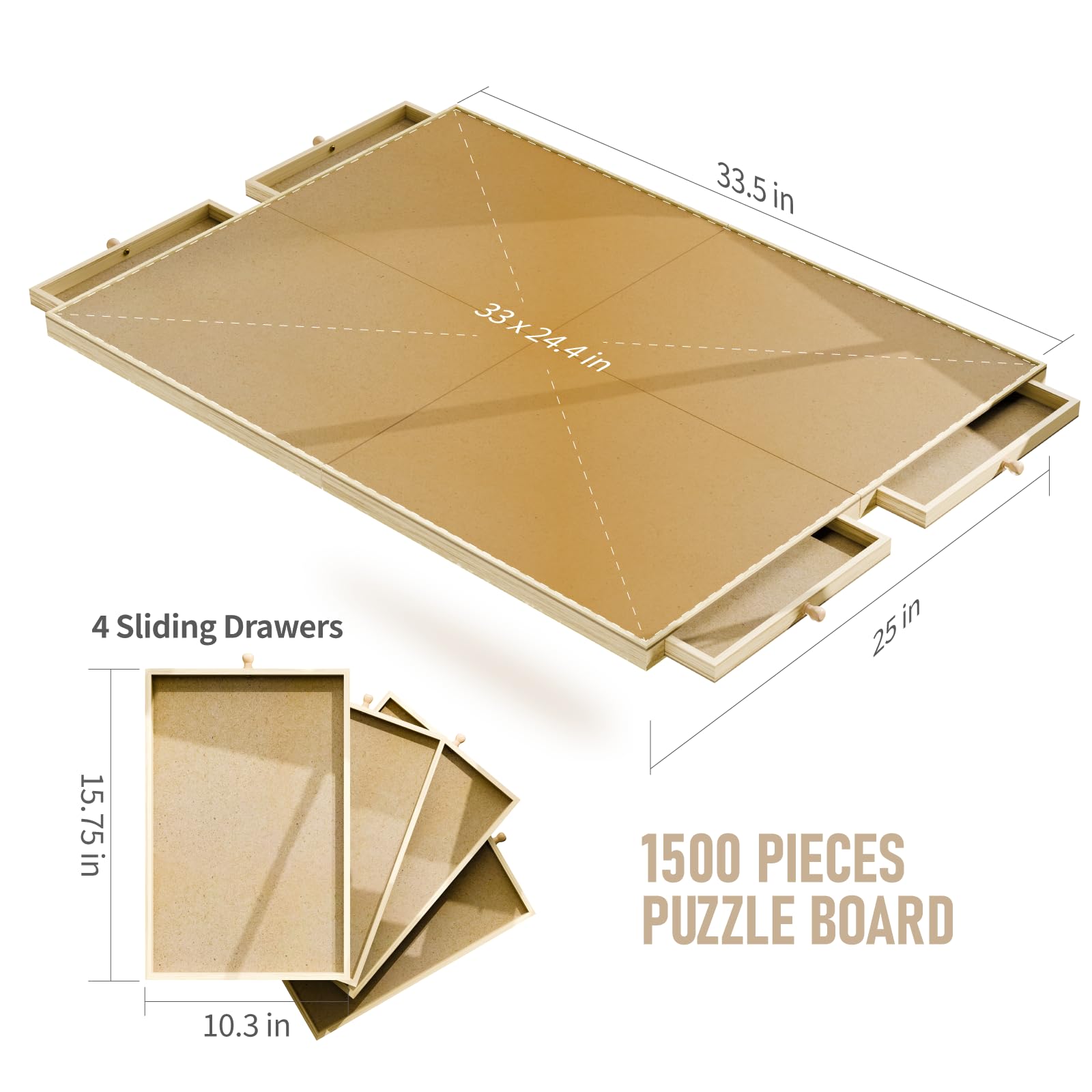 1500 Piece Rotating Puzzle Board, 25"x33" Jigsaw Puzzle Table with Drawer Storage and Puzzle Cover,Portable Puzzle Board for Adults