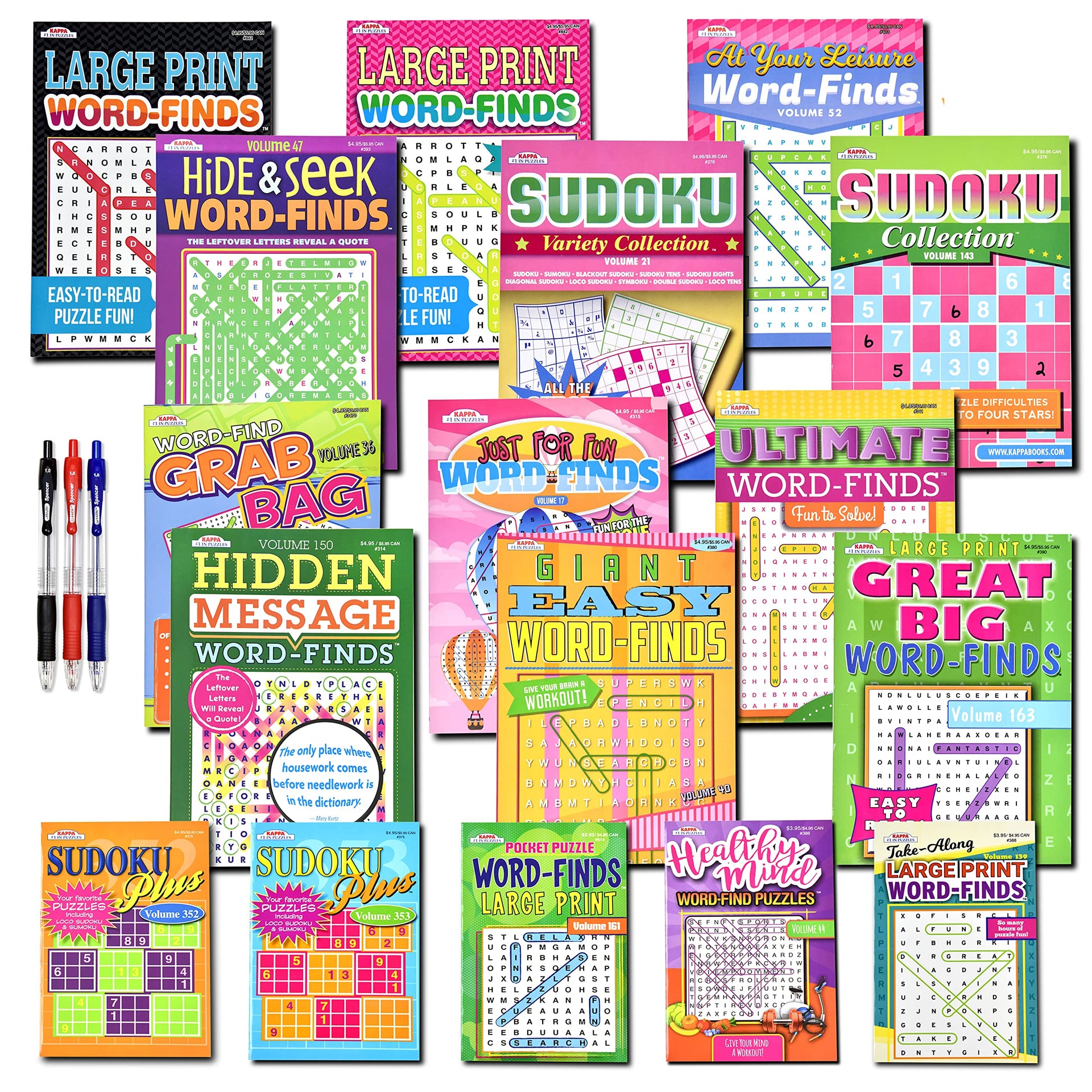 17-Pack 1400+ Sudoku & Word Search Puzzles for Adults – Brain Stimulation Activity Books for Seniors, Large 8x10 & Digest 5x8 Variety Pack